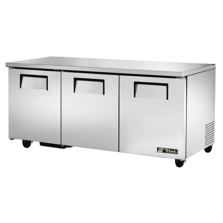 The True Refrigeration TUC-72-HC Undercounter Refrigerator 33-38°F is a versatile high-performance refrigeration unit designed for efficient food storage in commercial environments. This undercounter refrigerator features three robust stainless steel doors and six adjustable wire shelves with a PVC coating, allowing for customizable storage configurations. Its elegant stainless steel top and sides contribute to a durable design, while the aluminum interior and stainless steel floor ensure easy cleaning and maintenance. Powered by a 1/4 horsepower compressor with R290 Hydrocarbon refrigerant, this refrigerator operates efficiently within a temperature range of 33 to 38 degrees Fahrenheit. It runs on a 115v/60/1-ph electrical system, drawing 4.0 amps, and is compatible with standard NEMA 5-15P outlets. The unit is cULus and UL EPH Classified, adhering to rigorous safety and sanitation standards. Made in the USA, the True TUC-72-HC undercounter refrigerator is engineered for reliability and performance, making it ideal for restaurants, cafeterias, and other food service establishments that require dependable, space-saving refrigeration solutions. Its thoughtful design and construction support a variety of food storage needs while maintaining energy efficiency and environmental responsibility.