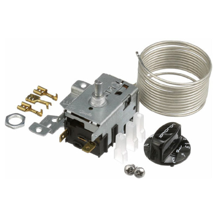Aftermarket TRUE TRUE800366 Temp Control W/dial Cold Out 7.1f, Normal Out 14.5f / In 35f, Warm In 21.1f Cap 72.5" Bulb Straight, Shaft 3.98mm / .156" Flat Mount Ctrs 2.2" / 55.9 Mm, If "ge" Brand T Stat Shaft Is Slotted 2 Prong., Dial "colder" 0-8 Qty 2 Mounting Screws M4-0.7 X 6mm, Qty 2 Q/d 1/4", True, Refrigerator Td-(36-12 50-18 65-24 95-38)., Series Tm. Tbb-24-48 Tbb-4 Td-24-7 Td-50-18 Twt-48, *oem Also Says For Bottle Coolers.