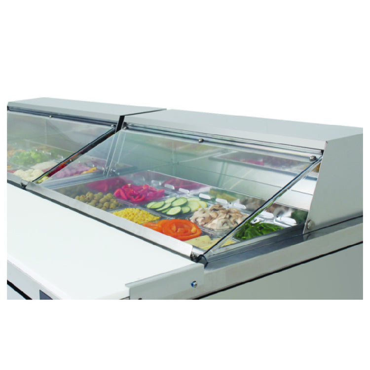 The Turbo Air PCL-72R Clear Lid-29-1/4" W is specifically designed for the PST-72-N (Right) model, offering precise compatibility and convenience. Measuring at 29-1/4 inches in width, this clear lid is crafted to seamlessly fit and function with the Turbo Air sandwich and salad prep table, ensuring optimal visibility and accessibility to stored ingredients while maintaining freshness. The clear construction of the lid provides a transparent view, allowing users to quickly identify contents without having to open the unit, thereby enhancing operational efficiency. Ideal for various segment markets within the food service industry such as restaurants, cafeterias, and catering services, this clear lid adds value by supporting streamlined operations and maintaining high standards of food preparation. The precision engineering of the Turbo Air PCL-72R Clear Lid ensures that it integrates perfectly with the PST-72-N model, offering a reliable and durable solution tailored to the demanding environments of professional kitchens. This product exemplifies a harmonious blend of practicality and innovation, catering to the specific needs of food service professionals who require dependable equipment for their daily operations. The Turbo Air PCL-72R Clear Lid is an essential accessory for enhancing the functionality and efficiency of your Turbo Air prep table.