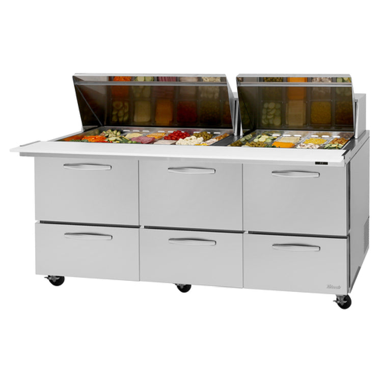 Turbo Air PST-72-30-D6-N PRO Series Mega Top Sandwich/Salad Prep Table Three-section