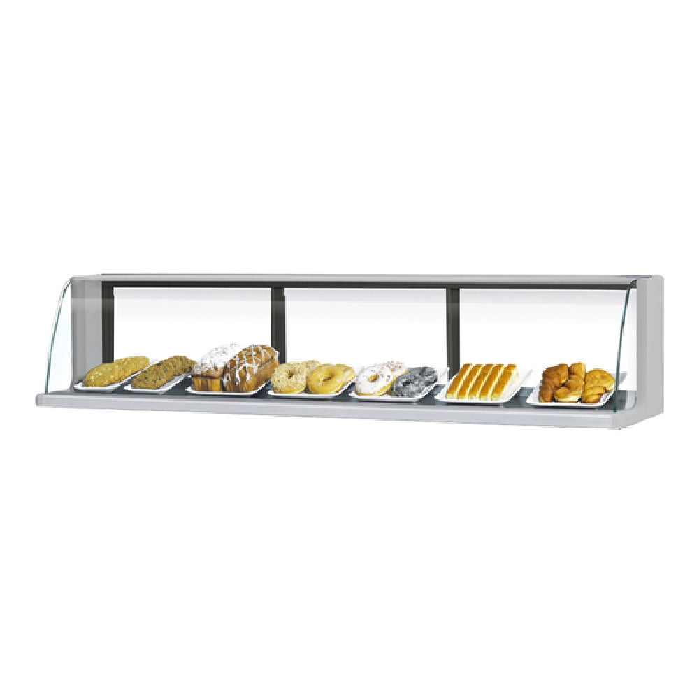 The Turbo Air TOMD-75LS Top Display Dry Case-Low Model for Open Display Merchandiser TOM-75S/L is a meticulously engineered unit designed to enhance the presentation capabilities of the TOM-75S/L merchandiser. Measuring 75 5/8 inches in width, 12 1/4 inches in depth, and 13 1/4 inches in height, this display case is optimized for retail environments that require a compact yet spacious solution for showcasing products. It features a glass front shield and side walls, providing maximum visibility and an appealing display for customers. The TOMD-75LS is equipped with three doors, allowing for easy access and efficient organization of products on display. Crafted from 300-grade stainless steel for both its interior and exterior, it ensures durability and a sleek, professional appearance that complements any commercial setting. This model is CSA-Sanitation certified, reinforcing its suitability for use in environments that prioritize hygiene and safety. The Turbo Air TOMD-75LS is an ideal choice for supermarkets, bakeries, and cafes aiming to enhance their product visibility while maintaining a clean and modern aesthetic in their merchandising displays.