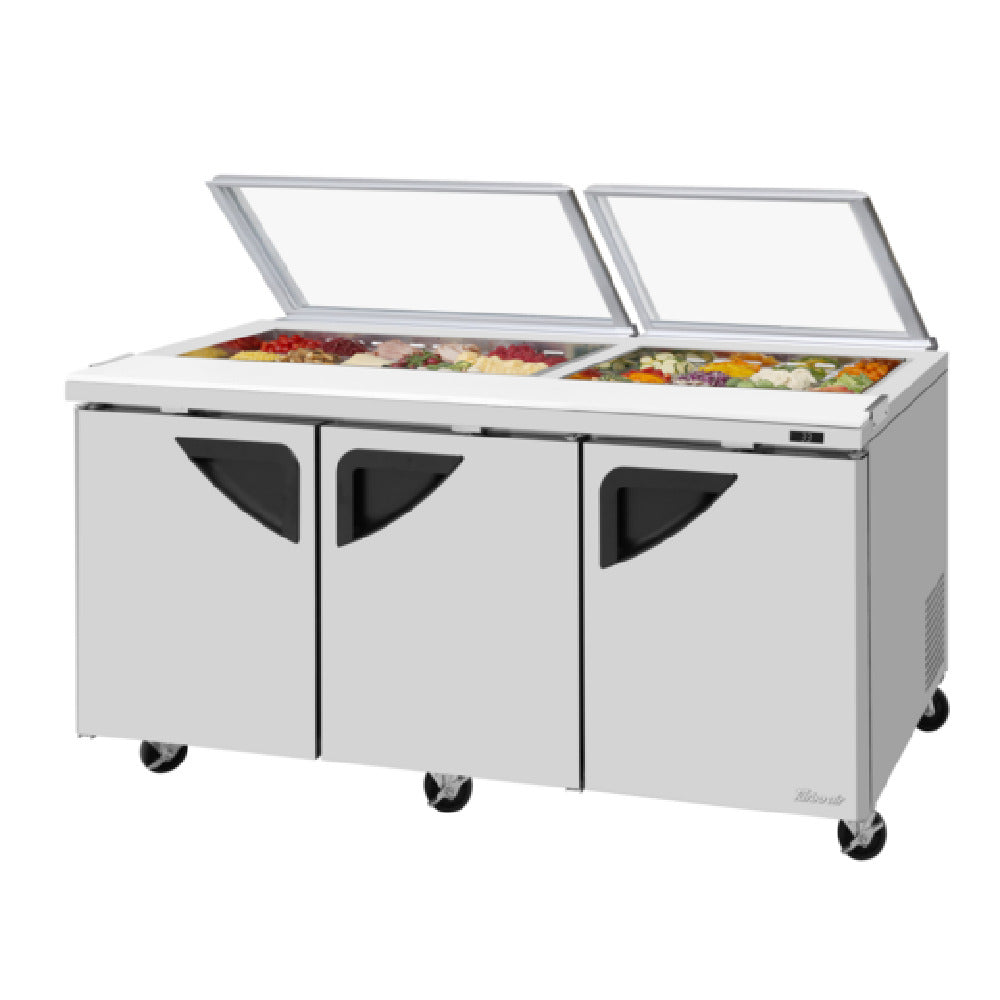 Turbo Air TST-72SD-N-GL Super Deluxe Sandwich/Salad Unit With Glass Lid Three-section