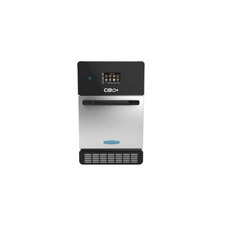 TurboChef (Middleby), CBO-9500-1, CIBO+ Rapid Cook Oven, Microwave, Convection Air, and ContactBase, electric, 15.5" wide, ventless, countertop, fully insulated cook chamber, stores up to 80 recipes, internal catalytic converter, removable rear grease cover, pull-down door with ergonomic handle, 208-240V, 60 Hz, 20A, 3.6 kW/2.0 kW/4.0 kW, NEMA 6-20 plug, TurboChef Cleaner Starter Kit, includes (1) cleaner packet, (1) 32oz bottle, and (1) foamer trigger, (1) aluminum paddle, (1) teflon tray, (1) teflon sheet, (1) USB drive, stainless steel front, top, and sides, IP23, UKCA, CE, ETL
