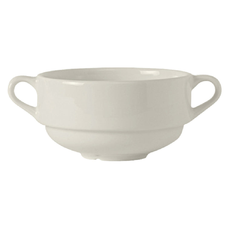 Tuxton AMU-044 Soup Cup is a versatile and durable serving solution with a capacity of 10-1/2 oz. and dimensions of 4-1/8" diameter by 2-3/8" height. This round soup cup features double handles, providing an elegant and practical design ideal for both casual and formal dining settings. Its stackable nature enhances storage efficiency, making it suitable for restaurant or café environments where space is at a premium. The cup is microwave and dishwasher safe, ensuring ease of use and maintenance in fast-paced food service operations. Additionally, it is oven proof, expanding its utility for various serving applications. The cup's fully vitrified ceramic construction ensures it is lead-free, promoting safe food consumption. Part of the AlumaTux® Modena collection, this soup cup comes in a timeless Pearl White finish, offering a clean and modern aesthetic that complements a wide range of table settings. Packed by 2 dozen per case, it is an economical choice for larger establishments seeking quality dinnerware solutions. The Tuxton AMU-044 Soup Cup is a reliable and stylish option for hospitality industry segments looking to enhance their dining service with quality ceramic tableware.