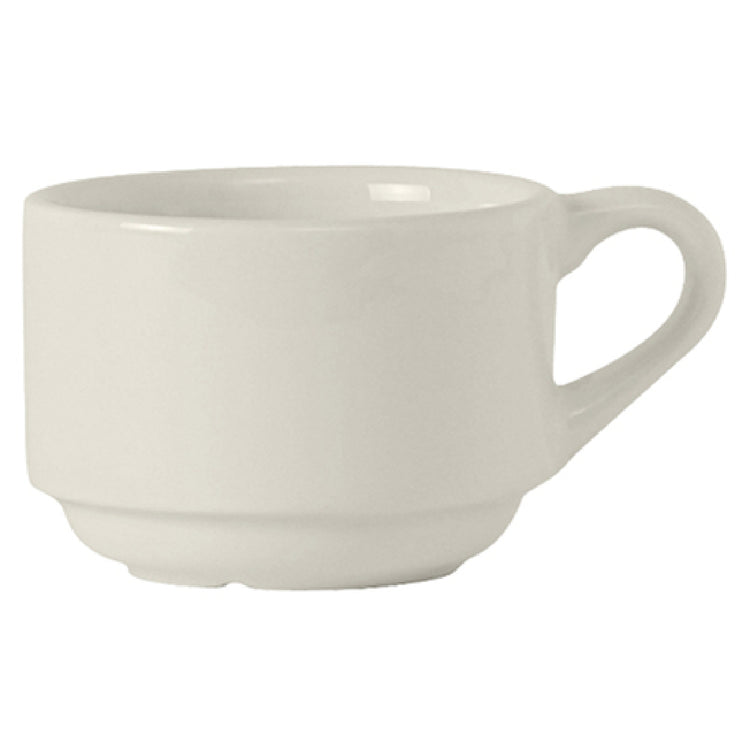 The Tuxton AMU-081 A.D. Cup 3 Oz. is a meticulously crafted piece of ceramic dinnerware designed to meet the diverse needs of the foodservice industry. With its compact dimensions of 2-1/2" diameter and 1-3/4" height, this cup offers a practical and space-saving solution for establishments ranging from high-end restaurants to cozy cafes. Its 3-ounce capacity is perfect for serving espresso, small portions of teas, or tasting samples, providing versatility in beverage presentation. The cup fits seamlessly with the AMU-554, ensuring compatibility and ease of use in various settings. Its stackable design optimizes storage efficiency, making it an excellent choice for businesses with limited space. Crafted from fully vitrified ceramic, the cup is not only lead-free but also microwave and dishwasher safe, and oven proof, demonstrating resilience under high temperatures. The AlumaTux® Modena Pearl White finish adds a touch of elegance and sophistication, enhancing the aesthetic appeal of any table setting. Packed by 3 dozen per case, this product is ideal for bulk purchases, catering to the needs of large-scale operations. The Tuxton AMU-081 A.D. Cup stands out for its durability, safety, and stylish appearance, delivering exceptional value to various market segments within the hospitality industry.