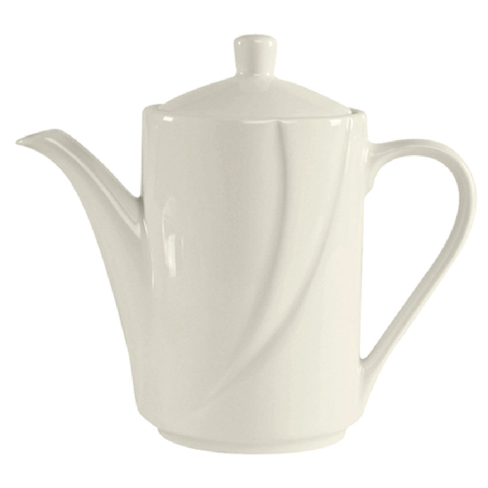 The Tuxton ASU-101 Coffee Pot 11 Oz. - 6-1/4"H is an exceptional piece of ceramic craftsmanship designed for versatility and durability across various market segments within the food service industry. This coffee pot holds an 11-ounce capacity, providing ample serving for individual or shared use. Standing at 6-1/4 inches in height, it is compact yet efficient, making it suitable for both commercial and home settings. One of its standout features is its full vitrification, ensuring a non-porous surface that enhances strength and durability while being lead-free, thus emphasizing safety and health compliance. The AlumaTux® San Marino Pearl White finish adds a sophisticated aesthetic that seamlessly blends into any dining or service environment. Moreover, this coffee pot is microwave and dishwasher safe, offering convenience in both usage and maintenance. It is also oven proof, expanding its functionality within culinary applications. Each case contains six of these meticulously crafted coffee pots, making it a practical choice for larger establishments or retail settings seeking quality and consistency. The Tuxton ASU-101 embodies a blend of elegance and practicality, meeting the rigorous demands of the hospitality industry while maintaining a focus on quality and safety.