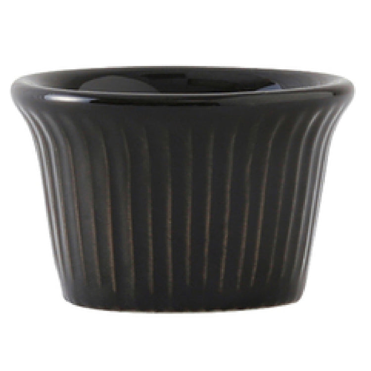 The Tuxton BBX-0152 Ramekin 1-1/2 Oz. 2-1/4" Dia. X 1-1/2"H is a meticulously crafted dishware solution, ideal for diverse culinary settings. With a capacity of 1-1/2 ounces, this ramekin is perfectly sized for serving individual portions, enhancing both presentation and portion control. Its dimensions of 2-1/4 inches in diameter and 1-1/2 inches in height make it a compact yet functional choice for any kitchen. Constructed from fully vitrified ceramic, it ensures durability and performance, as it is microwave and dishwasher safe, as well as oven proof. The lead-free composition of this ramekin underscores its safety and quality, while the DuraTux® technology signifies its robustness and longevity in demanding environments. The round, fluted design adds a touch of elegance, making it suitable for both casual and formal dining occasions. Available in a sleek black finish, it complements various table settings and culinary presentations. The Tuxton BBX-0152 Ramekin is packed by 4 dozen per case, catering to the needs of busy restaurants, catering services, and hospitality establishments seeking reliable and stylish serveware that meets professional standards. This ramekin is an exemplary choice for establishments prioritizing quality, versatility, and aesthetic appeal in their tableware collection.