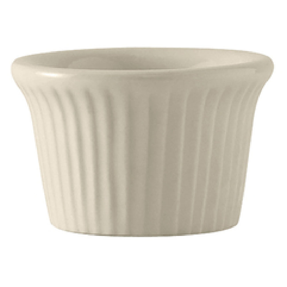 The Tuxton BEX-0152 Ramekin 1-1/2 Oz. 2-1/4" Dia. X 1-1/2"H is a versatile piece of ceramic ware designed to meet the demanding standards of the food industry. This ramekin boasts a 1-1/2 oz. capacity and measures 2-1/4 inches in diameter by 1-1/2 inches high, making it ideal for serving individual portions of sauces, dips, and desserts. Its round, fluted design adds an elegant touch to any table setting, while its fully vitrified and lead-free ceramic construction ensures durability and safety. With the added benefits of being microwave and dishwasher safe, as well as oven proof, this ramekin offers exceptional convenience and versatility for both preparation and presentation. The DuraTux® material in an American White/Eggshell finish enhances its visual appeal and complements a wide range of table settings. Whether used in a bustling restaurant, a catering business, or at home, the Tuxton BEX-0152 Ramekin delivers reliable performance and style. Packed by the dozen per case, it's an excellent choice for establishments looking to maintain consistent quality and aesthetics across multiple service scenarios.