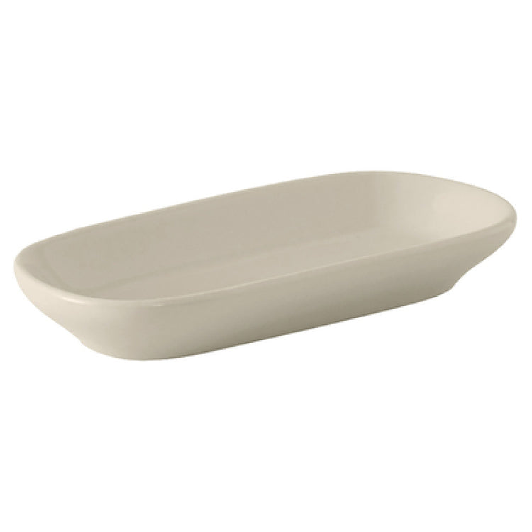 The Tuxton BEZ-0761 Relish Tray is a rectangular dish measuring 7-3/4 inches in length, 3-5/8 inches in width, and 1-1/8 inches in height, crafted specifically for serving relishes and similar accompaniments in diverse dining settings. Constructed from fully vitrified ceramic, this tray is both microwave and dishwasher safe, ensuring ease of use and maintenance in fast-paced environments. Its oven-proof nature allows it to withstand high temperatures, making it versatile for warming or baking applications. Notably, the BEZ-0761 is made from lead-free materials, aligning with health and safety standards pertinent to the foodservice industry. The tray is part of the DuraTux® collection, known for its durability and resistance to chipping, making it a reliable choice for high-traffic restaurants, catering services, and home use. Featuring an American White/Eggshell color, this tray presents a clean and classic appearance, enhancing the visual appeal of the food presentations. Packed by a dozen, it caters efficiently to bulk purchasing needs, ideal for large-scale operations within the industry. The Tuxton BEZ-0761 Relish Tray combines aesthetic appeal with practical functionality, offering a dependable solution for culinary professionals seeking quality serveware.