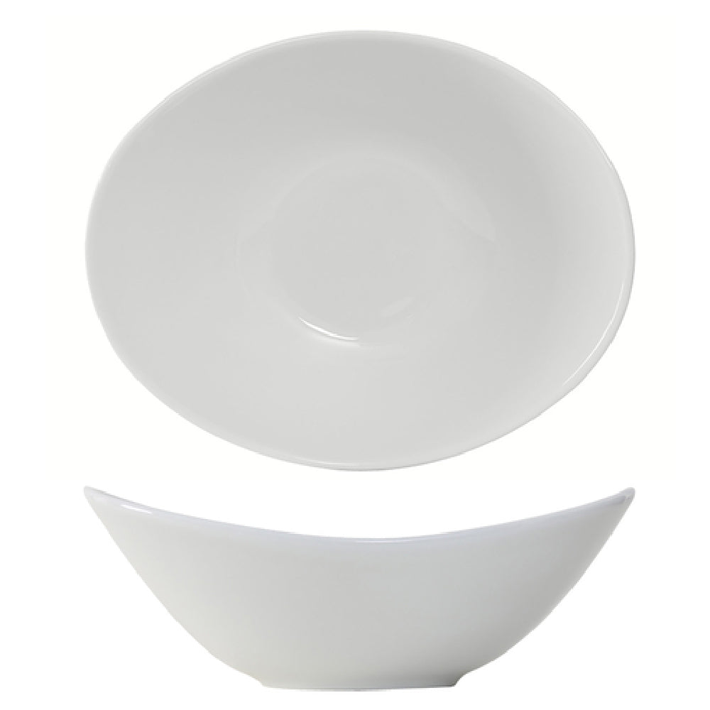 The Tuxton BPD-0807 Capistrano Bowl is an elegantly designed serving solution with a capacity of 20 ounces, ideal for various dining and culinary environments. Measuring 8 inches by 6-1/2 inches by 3 inches in height, this bowl is crafted in an oval shape, optimizing space and presentation. It is microwave and dishwasher safe, ensuring convenience and versatility for both home and professional use. Additionally, it is oven proof, making it suitable for a variety of cooking and serving scenarios. This bowl is fully vitrified, providing a durable and non-porous surface that enhances its longevity and resistance to chipping. Made from lead-free materials, it ensures safety and compliance with health standards. The DuraTux® porcelain white finish lends a classic and pristine appearance, making it an attractive addition to any table setting. The Tuxton BPD-0807 Capistrano Bowl, packed by the dozen, is a practical choice for restaurants, catering services, and home kitchens seeking a reliable and stylish serving option that balances functionality with aesthetic appeal.