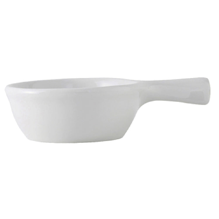 The Tuxton BPS-0902 French Casserole is a meticulously crafted piece of cookware, designed to meet the rigorous demands of professional kitchens. This casserole dish boasts a capacity of 9 oz., perfect for serving individual portions in a refined manner. It measures 7 inches by 4-3/4 inches by 1-7/8 inches, making it compact yet practical for various culinary applications. Equipped with a handle, it provides ease of use in both preparation and presentation. The casserole is both microwave and dishwasher safe, ensuring it stands up to the fast-paced environment of commercial food service. Additionally, it is oven-proof, allowing chefs to seamlessly transition from stovetop to oven. Constructed from fully vitrified porcelain, the Tuxton BPS-0902 is lead-free, embodying the highest standards of safety and durability. It carries the prestigious DuraTux® trademark, reflecting its resilience and suitability for intensive use. Presented in a pristine Porcelain White finish, this casserole dish is packed by 2 dozen per case, making it an ideal choice for bulk purchasing in the hospitality industry. Its thoughtful design and robust material composition make the Tuxton BPS-0902 French Casserole an invaluable asset for restaurants, hotels, and catering services seeking quality and efficiency in their serveware.