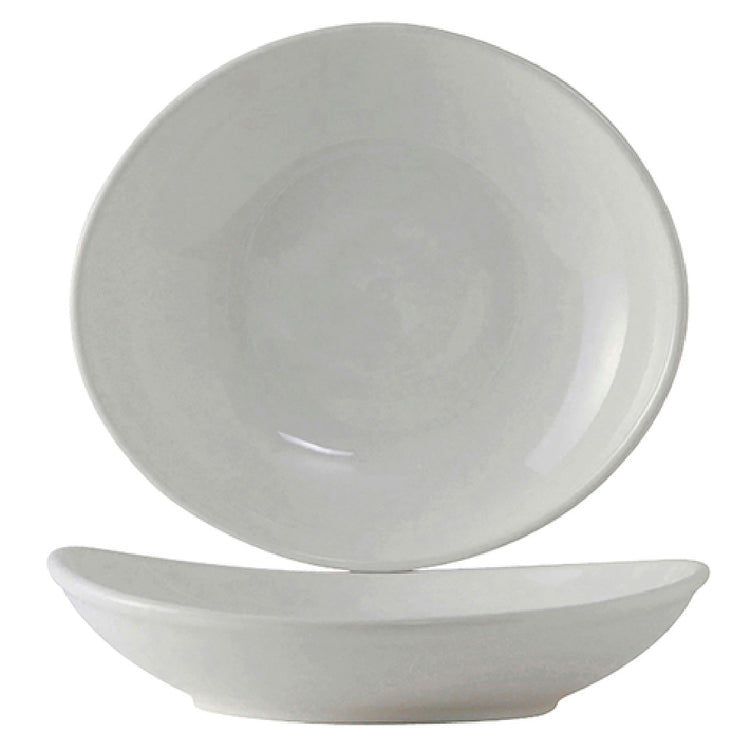 The Tuxton BWB-280J Bowl 30 Oz. 10-1/8" X 9-1/4" X 2-1/4"H is a versatile and durable piece of dinnerware designed to meet the demands of various market segments within the foodservice industry. This oval bowl is crafted from fully vitrified ceramic, ensuring it is both microwave and dishwasher safe, a crucial feature for busy commercial kitchens. Its oven-proof capabilities extend its functionality, making it suitable for both cooking and serving, thereby enhancing efficiency in meal preparation and presentation. The bowl's generous 30-ounce capacity allows for substantial servings, catering to establishments ranging from casual diners to upscale restaurants. Its lead-free composition underscores a commitment to safety and quality, aligning with health standards that are paramount in foodservice environments. The Tuxton BWB-280J Bowl is part of the DuraTux® collection, known for its resilience and longevity, making it an economically sound choice for high-volume settings. The classic white color enhances food presentation, ensuring dishes are visually appealing. Each dozen is neatly packed, facilitating inventory management for businesses. Overall, this bowl offers a unique blend of elegance, practicality, and durability, making it an ideal choice for a broad spectrum of dining establishments.