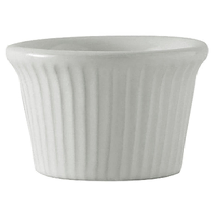 The Tuxton BWX-0152 Ramekin 1-1/2 Oz. 2-1/4" Dia. X 1-1/2"H is a meticulously crafted piece of ceramic dinnerware designed to meet the rigorous demands of professional kitchens and home cooking enthusiasts alike. With a capacity of 1-1/2 ounces, this round, fluted ramekin features a diameter of 2-1/4 inches and a height of 1-1/2 inches, making it an ideal choice for single-serving portions or for culinary tasks requiring precision and consistency. Its fully vitrified construction ensures durability and resistance to thermal shock, while being lead-free underscores its safety for food use. The ramekin's compatibility with microwave and dishwasher processes adds convenience, enhancing its appeal for busy food service environments. Moreover, its oven-proof feature allows it to withstand high temperatures, making it suitable for a variety of baking applications. The DuraTux® technology incorporated into the design ensures a robust build and a lasting white finish that complements diverse table settings. Packed by 4 dozen per case, the Tuxton BWX-0152 ramekin is an efficient choice for bulk purchasing, catering to restaurants, cafes, and catering services in need of reliable and high-quality serving solutions.