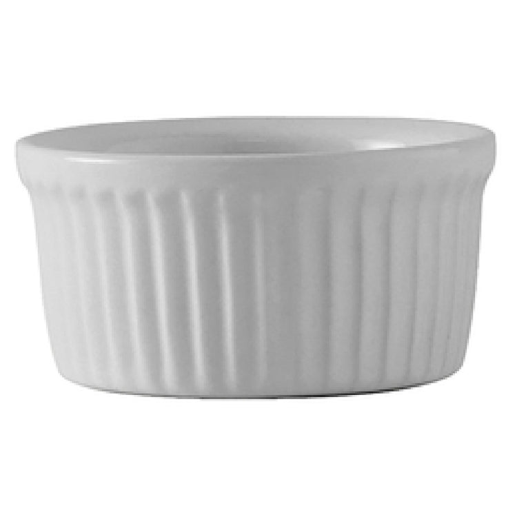 The Tuxton BWX-0252 Ramekin 2-1/2 Oz. 3" Dia. X 1-1/2"H is a versatile, round ceramic dish designed to meet the diverse needs of professional kitchens and home cooking enthusiasts alike. With a capacity of 2-1/2 ounces and dimensions of 3 inches in diameter by 1-1/2 inches in height, this fluted ramekin is perfect for individual servings of sauces, desserts, and condiments. Crafted from fully vitrified, lead-free ceramic, it ensures durability and safety, making it a reliable choice for any culinary application. The DuraTux® design signifies enhanced strength and resistance, ensuring that the ramekin can withstand the rigors of daily use. It is microwave and dishwasher safe, adding convenience to its sophisticated functionality. Additionally, it is oven-proof, allowing chefs and cooks to seamlessly transition from preparation to baking. Packed by 4 dozen per case, the Tuxton BWX-0252 ramekin is ideal for bulk purchasing by restaurants, catering services, and hotels, emphasizing efficiency and practicality. Its classic white color complements any table setting or presentation style, making it an elegant addition to any culinary environment. Whether for commercial or personal use, this ramekin stands as an exemplar of quality and versatility in ceramic dishware.