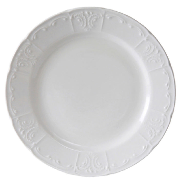 The Tuxton CHA-066 Plate 6-3/4" dia. Round is a meticulously crafted piece of dining ware, ideal for a variety of culinary presentations. With a diameter of 6-3/4 inches, this round plate features a wide rim and an embossed design, adding a touch of elegance to its appearance. Made from fully vitrified porcelain, it ensures exceptional durability, making it perfect for the rigorous demands of healthcare and hospitality settings. The porcelain construction is lead-free, emphasizing safety and health compliance. This plate is designed to endure the high temperatures of microwave and oven use, offering versatility in meal preparation and presentation. Additionally, it is dishwasher safe, facilitating easy and efficient cleaning, which is crucial in fast-paced environments. The Tuxton CHA-066 is part of the TuxCare® line, specifically tailored for healthcare needs in Chicago, and it comes in a classic Porcelain White color, enhancing its compatibility with various table settings. It is packed with 3 dozen plates per case, making it a cost-effective choice for large institutions looking to maintain a cohesive and professional dining aesthetic while investing in quality and long-lasting dinnerware.