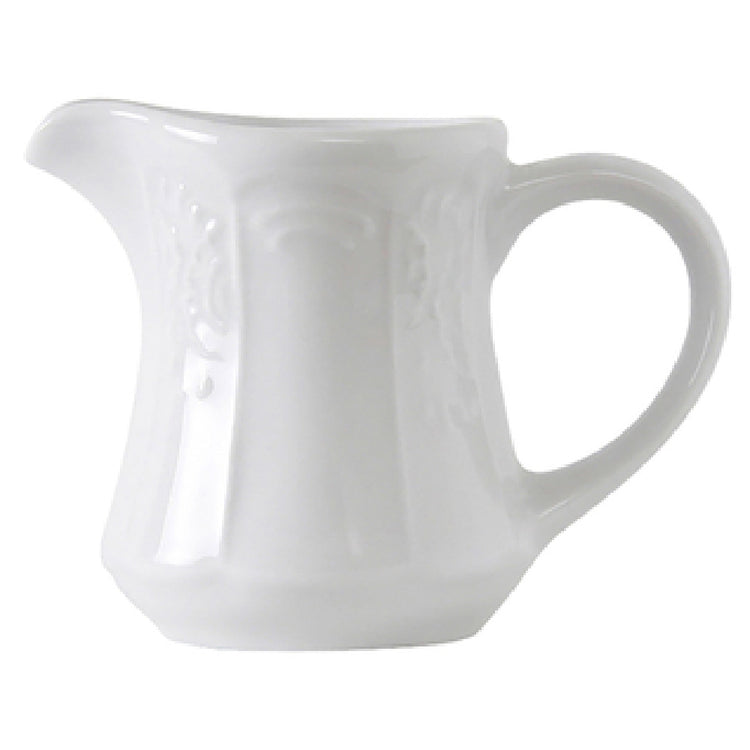The Tuxton CHR-125 Gravy Boat is an elegantly embossed kitchen essential, boasting a generous capacity of 12-1/2 oz., perfect for a variety of serving needs. Standing at 4-1/4" in height, this porcelain white gravy boat is both microwave and dishwasher safe, ensuring convenience and ease of use in busy kitchen environments. Its fully vitrified construction enhances durability and longevity, making it a reliable choice for both commercial and residential settings. This lead-free gravy boat is oven-proof, allowing for versatile usage in different cooking applications. Manufactured in Chicago, it is packaged by the dozen, providing an ideal solution for restaurant owners, caterers, and hospitality businesses seeking quality and consistency. The Tuxton CHR-125 Gravy Boat seamlessly integrates functionality with style, catering to diverse market segments by offering a product that is as practical as it is aesthetically pleasing. Whether used in high-end dining establishments or casual family gatherings, this gravy boat's robust design and user-friendly features make it a valuable addition to any kitchen setting.