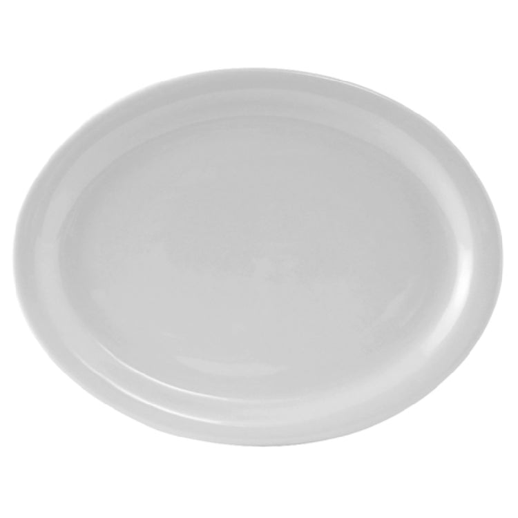 The Tuxton CLH-114 Platter 11-1/8" X 8-5/8" Oval is a versatile dining essential, crafted for both aesthetic appeal and practical functionality. Its dimensions of 11-1/8 inches by 8-5/8 inches make it the perfect size for a variety of culinary presentations, appealing to both commercial and home dining settings. This porcelain white platter features a narrow rim design, which not only enhances its sleek appearance but also maximizes the serving area. Notably, the platter is fully vitrified, ensuring durability and a non-porous surface that is both microwave and dishwasher safe, providing ease of use in fast-paced environments such as restaurants or catering services. Furthermore, its oven-proof capability adds another layer of versatility, allowing chefs to seamlessly transition dishes from preparation to presentation. The platter is also lead-free, aligning with health and safety standards. Manufactured in Colorado, it is sold in sets of a dozen, making it an economical choice for businesses in the food service industry. The Tuxton CLH-114 Platter stands out as a high-quality option for those seeking reliable and elegant dinnerware that supports diverse culinary applications.