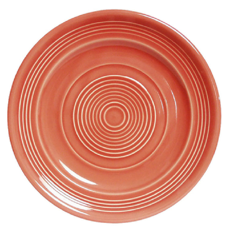 The Tuxton CNA-074 Plate 7-1/2" Dia. Round is a versatile and durable choice for various dining settings, featuring a 7-1/2 inch diameter and a round, wide rim design. This plate is crafted from fully vitrified ceramic, ensuring robustness and longevity. Its lead-free composition makes it a safer option for serving food. The plate's design incorporates the Concentrix® Cinnebar pattern, adding an elegant touch to its appearance. It is both microwave and dishwasher safe, offering convenience in both food warming and cleaning processes. The oven-proof nature of this plate expands its functionality, allowing it to be used for baking purposes as well. The Tuxton CNA-074 is sold in cases containing two dozen plates, making it an ideal choice for restaurants, catering services, and hospitality businesses that require reliable and attractive tableware in bulk quantities. Its technical specifications and aesthetic appeal make it a valuable addition to any dining environment, providing both practicality and style. Whether for commercial or home use, its features cater to different market segments requiring dependable and visually pleasing dinnerware solutions.