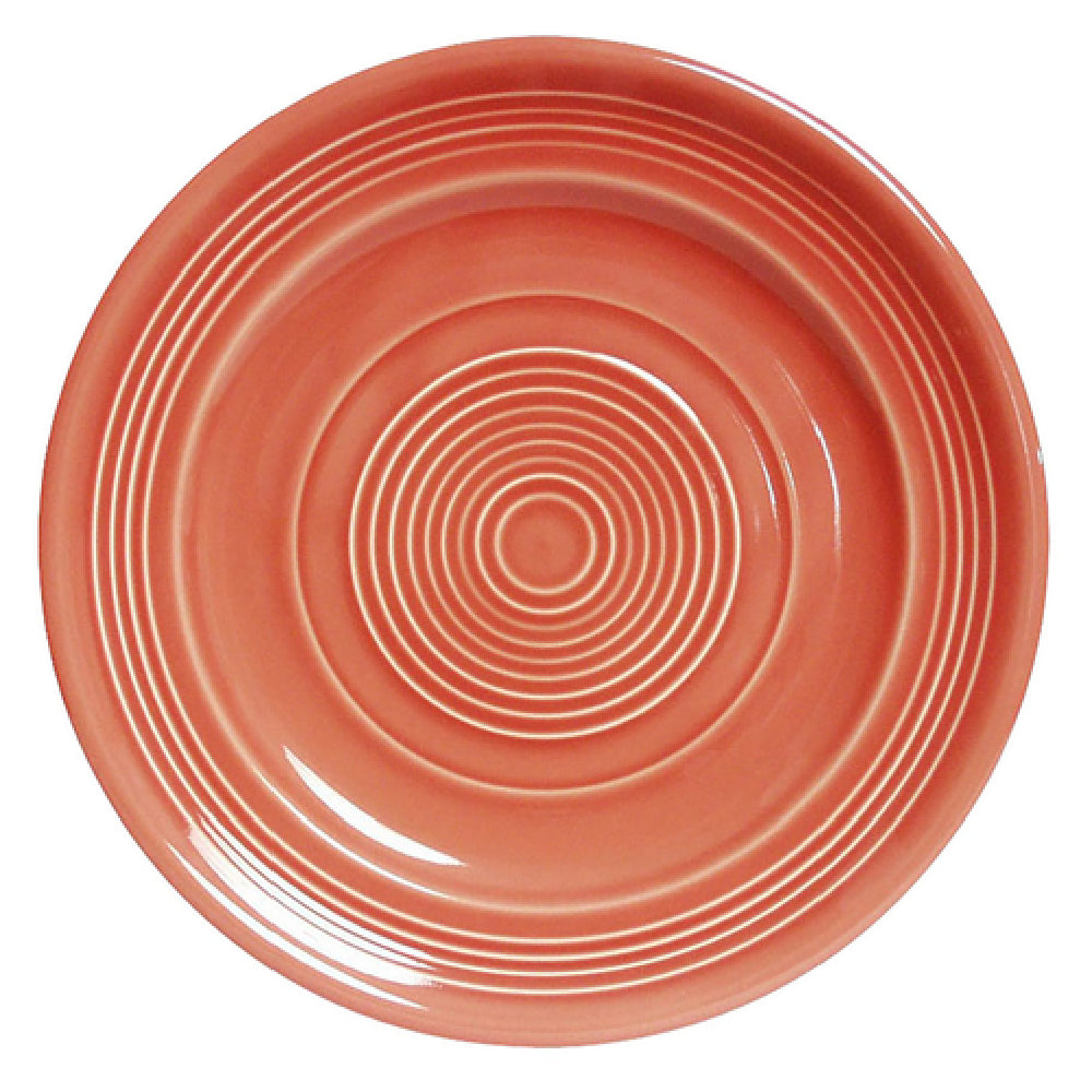 The Tuxton CNA-104 Plate 10-1/2" Dia. Round is a highly versatile and durable addition to any dining setting, crafted to meet the demands of both commercial and residential usage. Precisely measuring 10-1/2 inches in diameter, this round plate features a wide rim, providing an elegant presentation space for culinary creations. Made from fully vitrified ceramic, it ensures long-lasting strength and resistance to chipping. The Concentrix® design in Cinnebar color adds a unique aesthetic appeal, making it suitable for upscale restaurants and casual dining alike. This plate is microwave and dishwasher safe, offering convenience and efficiency in fast-paced environments such as restaurants or catering services. Its oven-proof nature further enhances its versatility, allowing chefs to seamlessly transition dishes from preparation to table service. Packed by the dozen, the Tuxton CNA-104 plate is ideal for establishments needing to maintain consistency and quality in large capacities. Its thoughtfully engineered features cater to the diverse needs of the food service industry, ensuring reliability and style in every use.