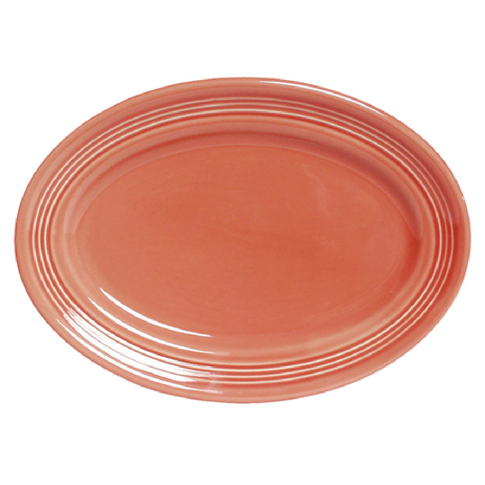 The Tuxton CNH-096 Platter 9-3/4" x 6-1/2" Oval is an exceptional piece of kitchenware designed to cater to various segments within the food service industry. This platter, part of the renowned Concentrix® line, is crafted from fully vitrified ceramic, ensuring it is both durable and lead-free. Its elegant oval shape, measuring 9-3/4 inches by 6-1/2 inches, features a wide rim that enhances its presentation appeal. It is microwave and dishwasher safe, making it a practical choice for restaurants and catering services that require efficient kitchen operations. The CNH-096 is also oven proof, providing versatility for chefs who need to transition dishes from the kitchen to the dining table seamlessly. The platter comes in a striking Cinnebar color, adding a vibrant touch to any table setting. It is packed by two dozen per case, which is ideal for businesses looking to stock high-quality tableware in bulk. This platter's robust construction and practical features make it a valuable asset for any food service establishment aiming to deliver excellence in both function and presentation.