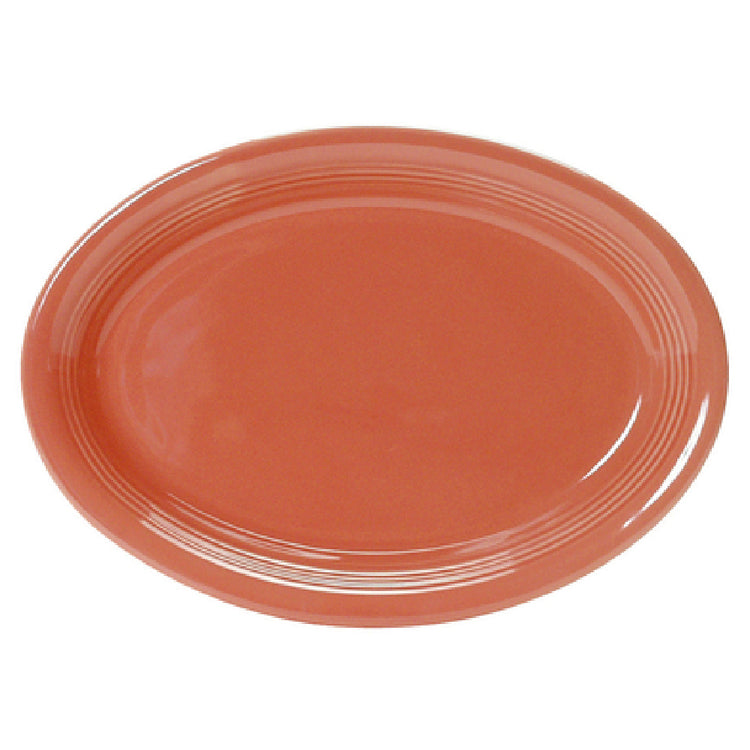 The Tuxton CNH-1142 Platter 11-1/2" X 8-3/4" Oval is a versatile and durable choice for a variety of dining environments, combining practical design with high-quality materials. Measuring 11-1/2 inches by 8-3/4 inches, this oval platter is crafted from fully vitrified ceramic, ensuring a lead-free and robust construction that withstands daily use. Its coupe design adds a modern aesthetic appeal, while the Concentrix® pattern in Cinnebar offers a distinctive visual touch. This platter is microwave and dishwasher safe, providing convenience for both preparation and cleanup. Additionally, it is oven proof, allowing for seamless transitions from cooking to serving. These features make it an ideal option for restaurants, hotels, and catering services seeking reliable serving ware that meets safety and durability standards. Sold in packages of one dozen, the Tuxton CNH-1142 Platter is a practical investment for establishments looking to enhance their table setting with a product that balances functionality and style. Whether used for serving appetizers, main courses, or desserts, its capacity and construction make it suitable for a wide range of culinary presentations.