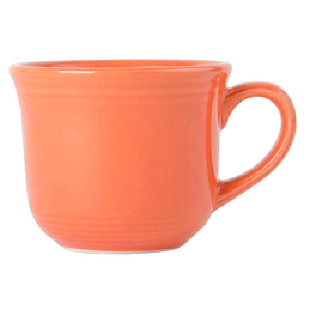 The Tuxton CPF-0702 Cup 8 Oz. 3-1/2" Dia. X 2-7/8"H is a versatile and durable piece of drinkware, perfectly suited for a variety of industry segments including healthcare and hospitality. With a capacity of 8 ounces, and precise dimensions of 3-1/2 inches in diameter and 2-7/8 inches in height, this cup is designed to meet diverse service needs. Made from fully vitrified ceramic, it ensures durability and resistance to chipping. The cup is lead-free, highlighting its safety for regular use. Tuxton's commitment to convenience is evident as this cup is both microwave and dishwasher safe, allowing for effortless heating and cleaning. Additionally, it is oven proof, offering flexibility in food service operations. The Tuxton CPF-0702 is part of the Concentrix® line and features the vibrant Papaya color, adding a touch of brightness to any setting. The use of TuxCare® technology ensures that each component maintains its quality and aesthetic appeal even under rigorous use. Packed by 2 dozen per case, it is ideal for establishments requiring bulk quantities. This cup meets the demands of professional settings, providing both aesthetic value and practical utility.