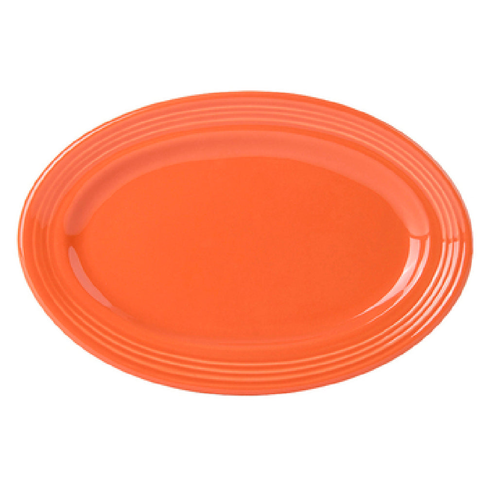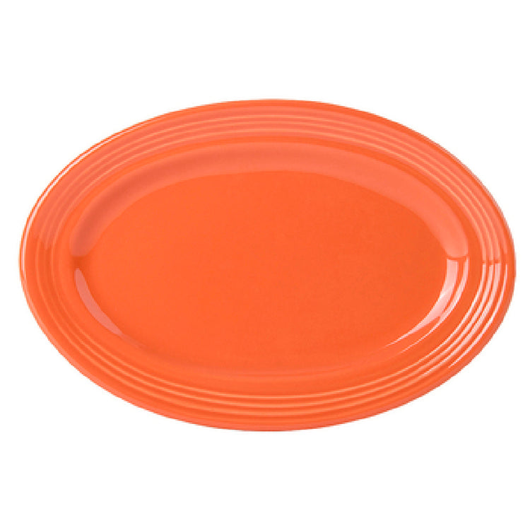 The Tuxton CPH-096 Platter 9-3/4" X 6-1/2" Oval is a versatile and durable dishware option designed for both professional and household settings. Measuring 9-3/4 inches by 6-1/2 inches, this platter features a classic oval shape with a wide rim, offering ample space for a variety of culinary presentations. Its construction from fully vitrified ceramic ensures long-lasting durability and resistance to chipping, making it a practical choice for high-traffic environments such as restaurants and catering services. The platter is microwave, dishwasher, and oven safe, providing flexibility in cooking and cleaning processes. Additionally, it is lead-free, aligning with health and safety standards. The platter's Papaya color, part of the Concentrix® collection, adds a vibrant touch to any table setting. Packed by 2 dozen per case, this product is ideal for establishments requiring bulk quantities. The Tuxton CPH-096 Platter combines aesthetic appeal with functional design, meeting the needs of diverse segments within the hospitality industry.