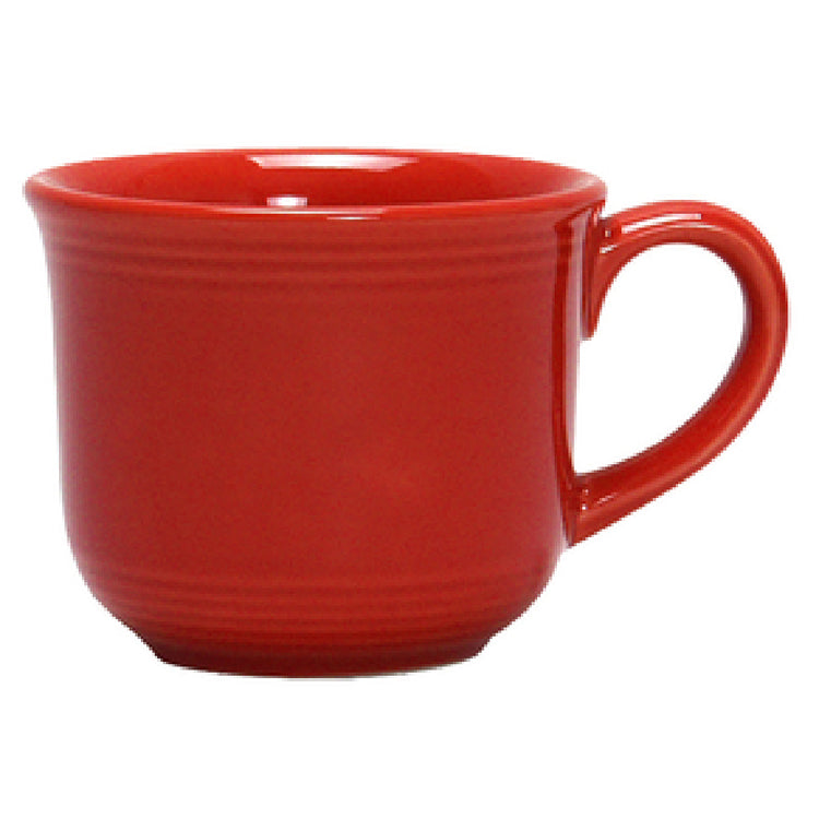 Tuxton CQF-0702 Cup 8 Oz. 3-1/2" Dia. X 2-7/8"H is a meticulously crafted ceramic cup that embodies both functionality and elegance, ideal for diverse segments within the hospitality and healthcare industries. This cup, with its 8-ounce capacity, is perfectly sized for serving a variety of beverages, from steaming hot coffee to soothing herbal teas. Its dimensions - 3-1/2" in diameter and 2-7/8" in height - make it a compact yet substantial choice for any setting. Engineered for modern conveniences, this cup is microwave and dishwasher safe, allowing for easy reheating and cleaning. Furthermore, its oven-proof nature expands its utility, accommodating creative culinary applications. The fully vitrified construction ensures a non-porous surface, enhancing durability and resistance to chipping. Prioritizing safety, this cup is lead-free, aligning with health-conscious environments. Part of the TuxCare® and Concentrix® collections, the Tuxton CQF-0702 Cup is packed with Cayenne color, offering a vibrant aesthetic appeal. Packaged by 2 dozen per case, it supports efficient inventory management. Whether in upscale restaurants, casual dining, or healthcare facilities, its blend of practicality and aesthetic design makes this ceramic cup an indispensable asset for any professional setting.