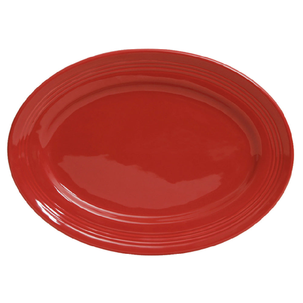 The Tuxton CQH-116 Platter 11-1/2" X 8-3/8" Oval is a meticulously designed piece that combines functionality with style, catering to various segments within the food service industry. This ceramic platter features an elegant oval shape with dimensions of 11-1/2 inches by 8-3/8 inches, providing ample surface area for serving a variety of dishes. Its wide rim enhances both presentation and practicality, making it suitable for both casual and formal dining settings. The platter is fully vitrified, ensuring maximum durability and resistance to chipping or cracking, which makes it ideal for high-volume environments such as restaurants or catering services. Safety is a key aspect, as the platter is lead-free, promoting health-conscious dining. Its versatility is further highlighted by being microwave and dishwasher safe, allowing for easy reheating and effortless cleaning, while its oven-proof nature offers additional cooking flexibility. The Tuxton CQH-116 is part of the Concentrix® line, available in an eye-catching Cayenne color, which adds a vibrant touch to any table setting. Packed by the dozen, this platter is a cost-effective addition for establishments looking to enhance their dining experience with durable and aesthetically pleasing serveware.