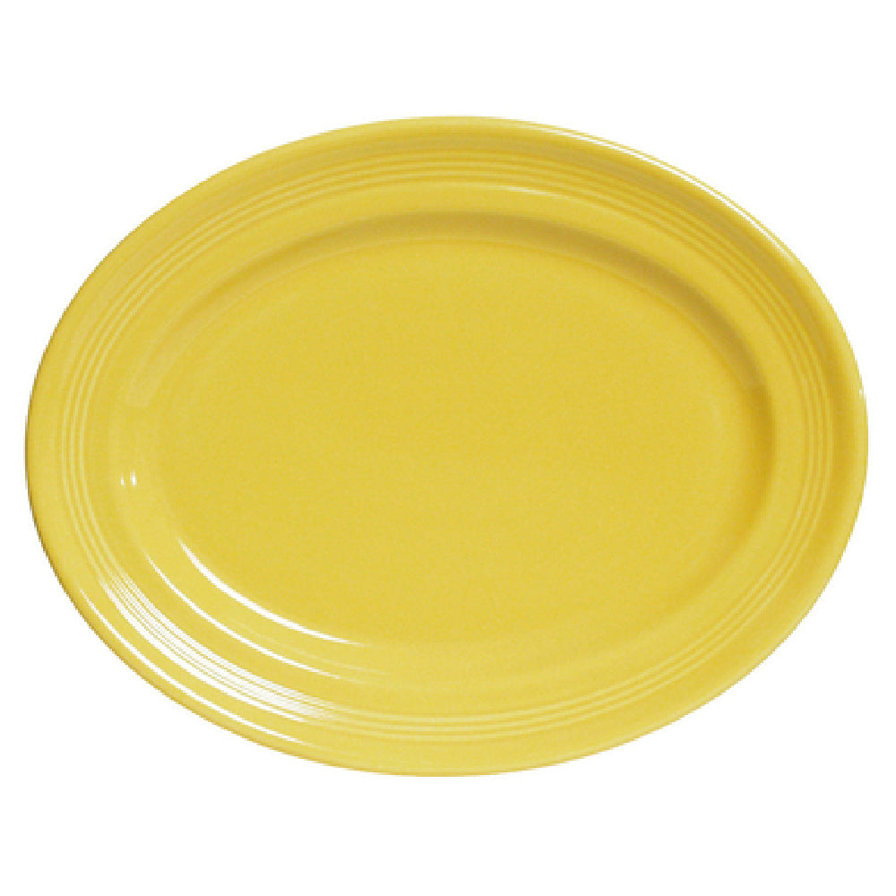 The Tuxton CSH-116 Platter 11-1/2" x 8-3/8" Oval is a meticulously crafted piece of ceramic tableware, offering a wide rim design that enhances its aesthetic appeal and functionality. Fully vitrified and lead-free, this platter ensures both safety and durability, making it an ideal choice for various food service segments, including restaurants, catering, and home dining. Its microwave and dishwasher safe properties provide convenience and flexibility in fast-paced kitchen environments. The oven-proof nature of the platter extends its utility, allowing it to easily transition from the oven to the table, thus maintaining the temperature and presentation of culinary creations. The Tuxton CSH-116 is part of the Concentrix® collection, distinguished by its Saffron color, which adds a touch of elegance and vibrancy to any dining setting. Packed by the dozen, this platter is a practical investment for businesses needing bulk quantities without compromising on quality. With dimensions of 11-1/2" x 8-3/8", it strikes a balance between ample serving space and ease of handling, making it suitable for serving a variety of dishes, from appetizers to main courses, in an appealing and professional manner.