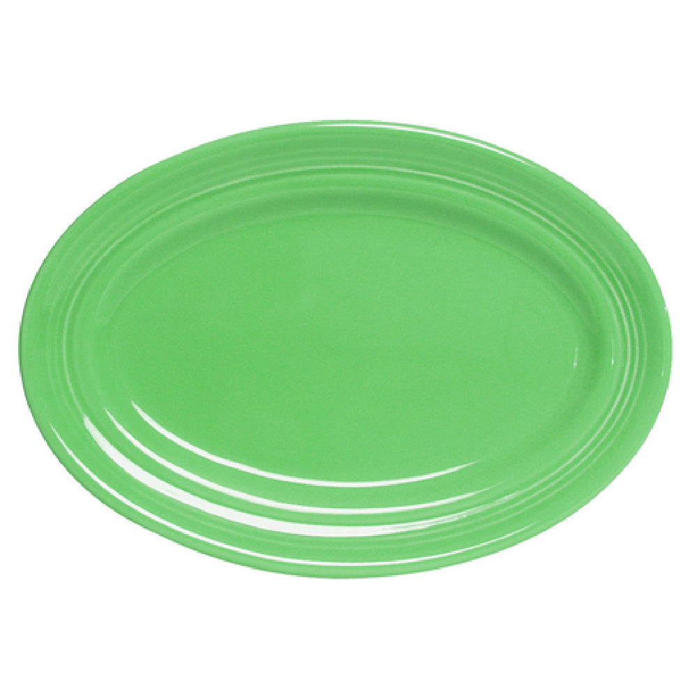 The Tuxton CTH-136 Platter 13-3/4" x 10-1/2" Oval is a versatile and durable serving solution designed to meet the demands of various market segments, including hospitality, restaurant, and catering industries. With its wide rim and fully vitrified ceramic construction, this platter combines elegance with practicality. Its dimensions of 13-3/4 inches by 10-1/2 inches offer ample serving space, making it ideal for presenting a variety of culinary creations. The platter is microwave and dishwasher safe, providing convenience and ease of use for high-turnover environments where efficiency is paramount. Additionally, it is oven proof, allowing for seamless transitioning from preparation to presentation. Its lead-free composition underscores a commitment to safety and environmental responsibility. The platter is part of the Concentrix® Cilantro line, which is packed by 6 each per case, enabling bulk purchasing for larger operations. This ensures that establishments can maintain a consistent and sophisticated presentation while benefiting from the cost efficiencies of bulk packaging. The Tuxton CTH-136 Platter's robust design and attractive aesthetic make it a valuable addition to any dining setting, enhancing the dining experience through its functional and stylish attributes.