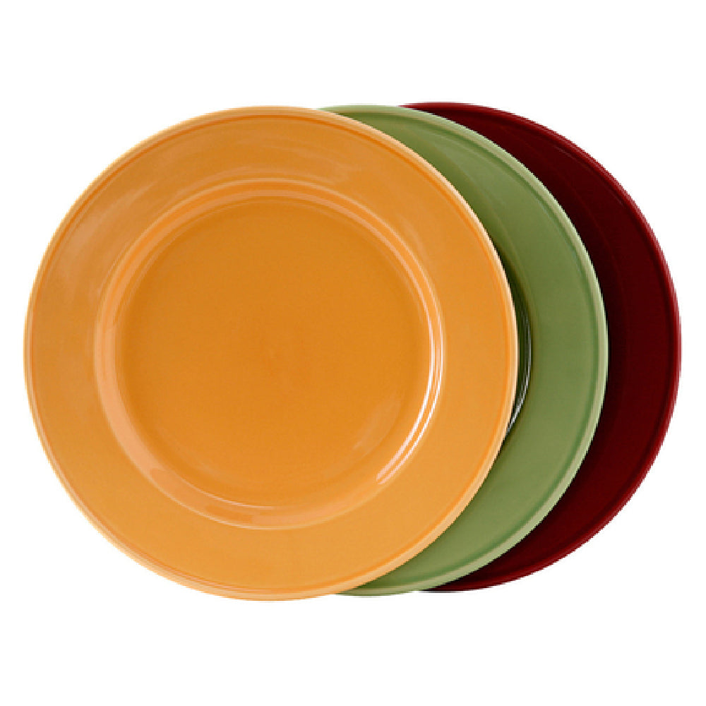The Tuxton DYA-112 Plate 11-1/4" Dia. Round is a meticulously crafted ceramic dining piece that exemplifies both functionality and aesthetic appeal. With a generous diameter of 11-1/4 inches, this plate features a wide rim design, making it an ideal choice for both sophisticated dining establishments and casual home settings. Designed with practicality in mind, it is microwave and dishwasher safe, ensuring ease of use and maintenance in fast-paced environments. This plate is also oven proof and fully vitrified, a testament to its durability and resistance to thermal shock, making it a dependable choice for culinary professionals. Safety is paramount, as evidenced by its lead-free composition, allowing for worry-free dining experiences. The plate is part of the DuraTux® line, known for its resilience and quality. Offered in an array of colors - Butterscotch, Pistachio, Cranberry - it adds a vibrant touch to any table setting. For diversity in presentation, each dozen includes four of each color, accommodating versatile dining themes and occasions. The Tuxton DYA-112 Plate is a vital asset in various market segments, from high-end restaurants to home dining, combining robust construction with a versatile palette to enhance any culinary presentation.