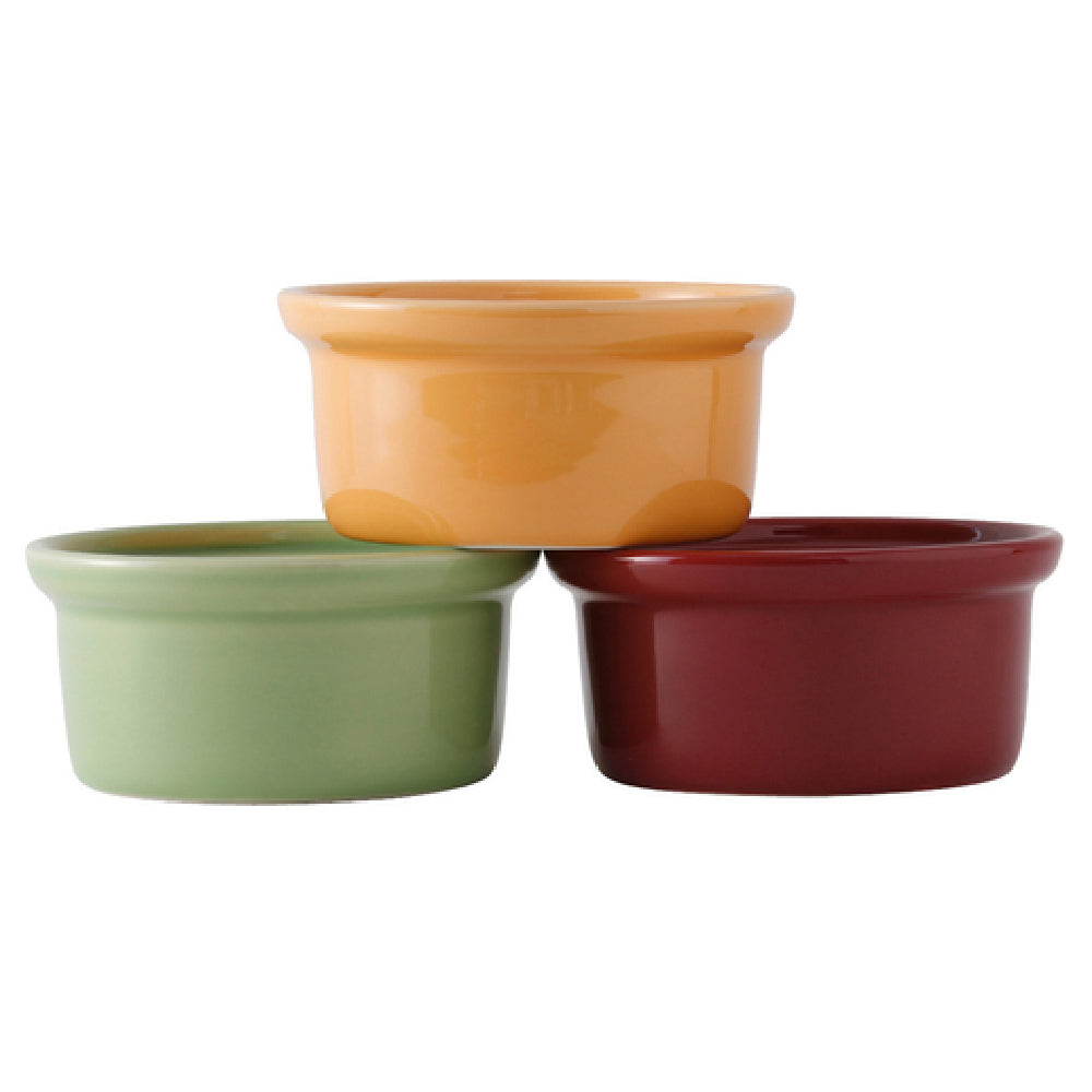 The Tuxton DYB-1006 Casserole Dish is a versatile and practical addition to any kitchen, designed with a capacity of 7-1/2 oz. and a diameter of 4-5/8 inches, along with a height of 2-1/4 inches. This round casserole dish, crafted without a lid, is perfect for both residential and commercial kitchens, providing flexibility in use. Its microwave and dishwasher safe design simplifies food preparation and cleanup, while its oven-proof nature makes it ideal for various cooking applications. The dish is fully vitrified, ensuring it is non-porous and highly durable, resisting chipping and cracking. Lead-free and made from high-quality ceramic, it underscores safety and quality in food service environments. As part of the DuraTux® collection, this casserole dish is available in an assortment of colors - Butterscotch, Pistachio, and Cranberry - with four of each color per dozen, catering to diverse aesthetic preferences. Packed by the dozen, it is an excellent choice for restaurants, catering services, and home chefs who value both functionality and design. This dish is an exemplar of Tuxton's commitment to quality and style, making it a valuable asset for anyone looking to enhance their culinary presentations with reliability and elegance.