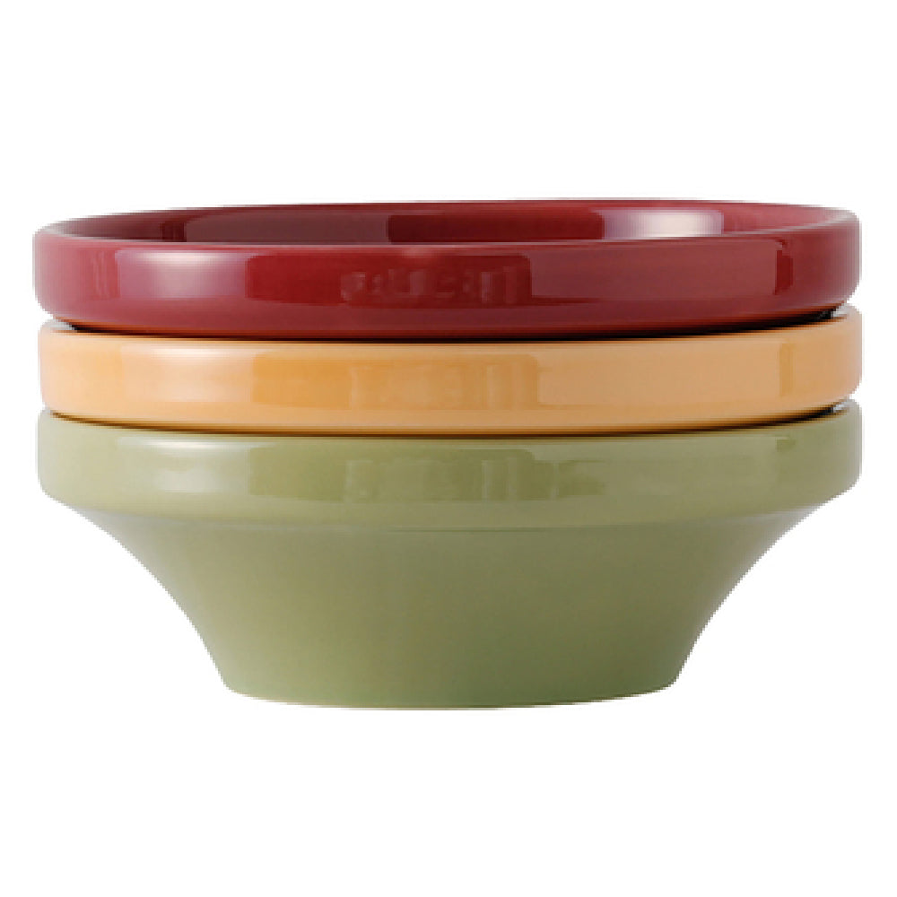 The Tuxton DYB-130D Soup Bowl is a versatile ceramic dining solution, boasting a capacity of 13 ounces, suitable for a variety of culinary presentations. With dimensions of 5-7/8 inches in diameter and a height of 2 inches, this round bowl is crafted for both aesthetic appeal and functional utility. This soup bowl is microwave and dishwasher safe, providing convenience and ease of use in fast-paced kitchen environments. Its oven-proof nature further enhances its utility, allowing chefs to serve dishes that require oven finishing. The bowl is fully vitrified, ensuring a durable, non-porous surface that stands up to the rigors of commercial use. It is made of lead-free ceramic, underscoring its safety for food service applications. The DuraTux® trademark guarantees a high-quality product built to withstand daily restaurant operations. Available in an assortment of colors - Butterscotch, Pistachio, and Cranberry - with four of each color per dozen, this soup bowl offers aesthetic versatility to complement diverse dining settings. Packed by the dozen, the Tuxton DYB-130D appeals to both restaurant owners seeking reliable dinnerware and culinary enthusiasts aiming to enhance their dining presentations with vibrant, durable, and safe soup bowls.