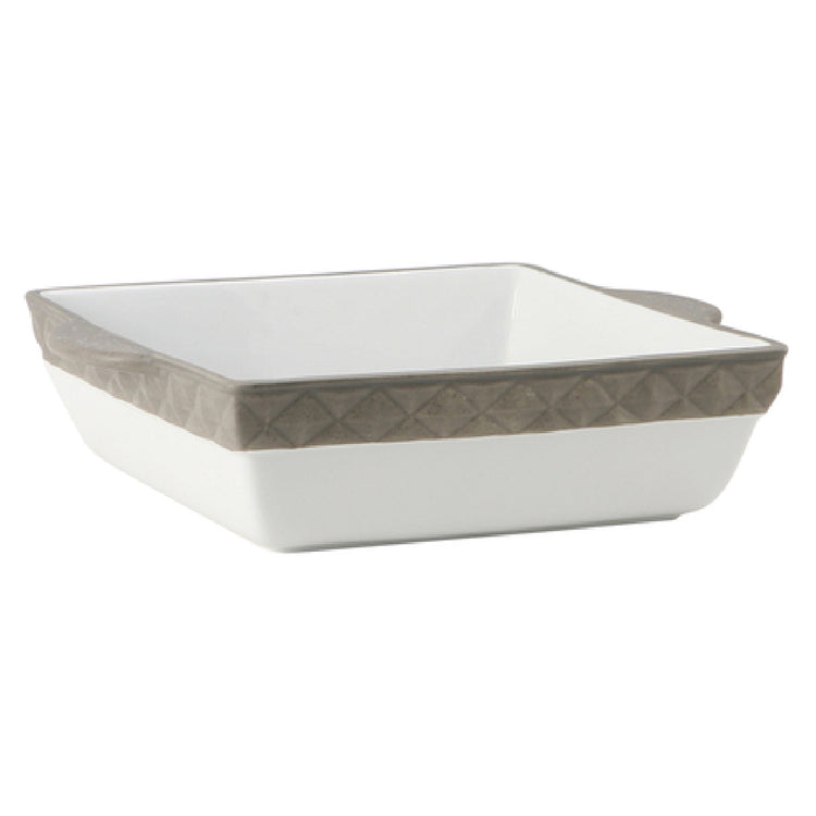 The Tuxton EAF-401 Casserole Dish is a versatile kitchen essential that combines functionality and style with its 3-1/4 qt. capacity, designed to meet diverse culinary needs. Measuring 12"L x 10"W x 3"H, and 10"L without the handle, this square casserole dish is crafted for convenience and efficiency in professional and home kitchens alike. The dish features an embossed pattern and is constructed from fully vitrified porcelain, ensuring durability and resistance to chipping. Its Porcelain White finish with a Black Truffle Band adds a touch of elegance, making it suitable for both cooking and serving. This casserole dish is microwave and dishwasher safe, providing ease of use and quick cleanup, while its oven-proof nature expands its cooking capabilities. The lead-free composition assures safety in food preparation, aligning with industry standards. The dish is packed in a case containing two units, catering to the needs of restaurants, catering services, and culinary enthusiasts. The Tuxton EAF-401 Casserole Dish showcases a blend of practicality and aesthetic appeal, making it a valuable addition to any kitchen setting.