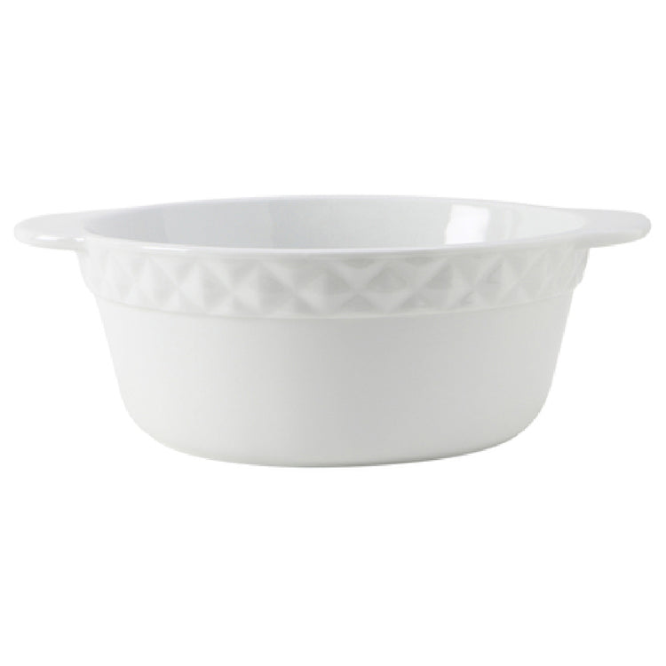 The Tuxton EAP-301 Casserole Dish 3-1/2 Qt. 12" Dia. X 4"H (10" Dia. Without Handle) is a versatile kitchenware essential designed for both professional chefs and home cooks. This round casserole dish accommodates a volume of 3-1/2 quarts, ensuring ample space for a variety of recipes. Measuring 12 inches in diameter with handles and 10 inches without, it provides a generous cooking surface while maintaining a compact form for efficient storage. Crafted from fully vitrified porcelain, the dish is embossed and boasts a sleek Porcelain White with White Band finish, enhancing its aesthetic appeal. It is microwave and dishwasher safe, simplifying reheating and cleaning processes, and is oven proof, allowing it to withstand high cooking temperatures. Importantly, the dish is lead-free, ensuring food safety and compliance with health standards. The Tuxton EAP-301 is sold in cases of two, making it an ideal choice for culinary professionals and catering services seeking reliable and attractive serveware. Its durable construction and elegant design make this casserole dish a valuable addition to any kitchen, offering a blend of functionality, safety, and style.