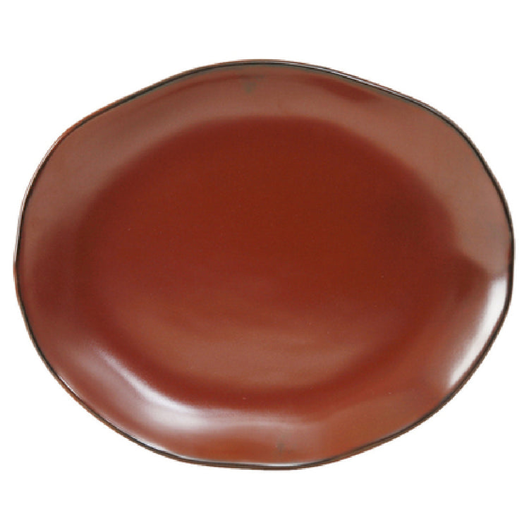 The Tuxton GAR-023 Platter 13-1/4" x 11" Oval is a meticulously crafted piece suitable for various culinary settings, blending both functionality and aesthetic appeal. This platter boasts dimensions of 13-1/4 inches by 11 inches, offering ample space for serving a range of dishes. Made from fully vitrified ceramic, it ensures long-lasting durability and resistance to chipping, making it ideal for high-traffic environments such as restaurants and catering services. Its lead-free composition underscores a commitment to safety, aligning with health standards for serving food. The platter's microwave and dishwasher-safe properties add to its practicality, allowing for ease of use and maintenance in fast-paced kitchen settings. Additionally, its oven-proof design caters to versatile cooking methods, providing the flexibility needed for various culinary applications. The Tuxton GAR-023 is part of the TuxTrendz® Artisan collection, featuring a distinctive Red Rock color that adds a touch of sophistication to any dining presentation. Packed by the dozen, it meets the needs of establishments requiring both style and functionality in larger quantities. This platter is an exemplary choice for those in the food service industry seeking a high-quality, reliable serving solution that does not compromise on elegance.
