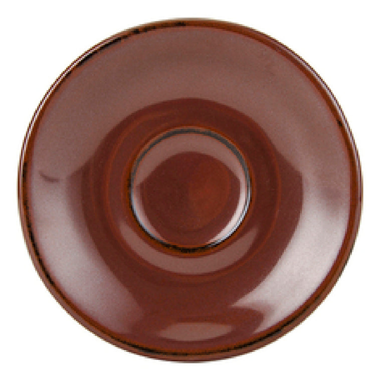 The Tuxton GAR-086 Espresso Saucer 5" Dia. Round is a meticulously crafted ceramic piece designed to complement any espresso setup with its elegant yet functional features. Measuring 5 inches in diameter, this round saucer is a versatile addition to both commercial and home settings, particularly favored in the hospitality industry for its durability and safety standards. It is microwave and dishwasher safe, ensuring convenience in fast-paced environments, and is also oven proof, allowing for a variety of serving needs. The saucer is fully vitrified, a process that enhances its strength and prevents moisture absorption, thereby extending its lifespan. Crafted from lead-free ceramic, it aligns with health and safety standards crucial for food service operations. The saucer is part of the TuxTrendz® Artisan collection, presented in the striking Red Rock color, which adds a pop of color and sophistication to any table setting. Packed by 2 dozen per case, this product is ideal for bulk purchase, catering to the demands of high-volume establishments like cafes and restaurants that require consistent quality and style.