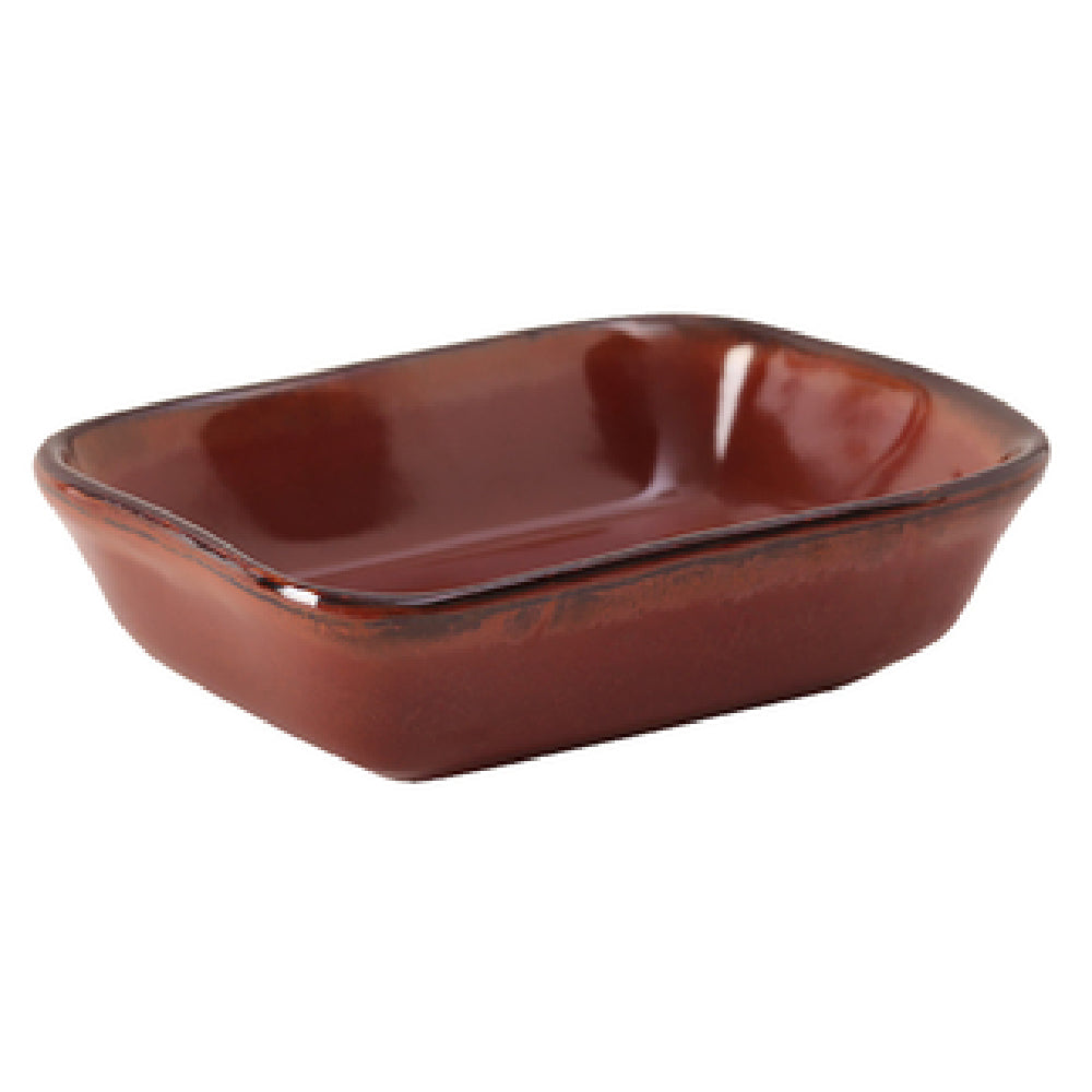Tuxton GAR-552 Side Dish 8 Oz. 5-3/8" X 4-1/8" X 1-1/2"H is a versatile piece meticulously crafted for the modern dining experience, blending functionality with a touch of elegance. This rectangular side dish is designed with precision, measuring 5-3/8 inches by 4-1/8 inches with a height of 1-1/2 inches, providing ample space for serving an 8-ounce portion. Engineered to withstand the demands of busy kitchens, it is microwave and dishwasher safe, ensuring convenience in both preparation and cleaning processes. The dish is oven-proof, allowing for seamless transitions from baking to serving, enhancing culinary efficiency. Crafted from fully vitrified ceramic, the Tuxton GAR-552 is lead-free, prioritizing user safety while delivering a lasting shine and resistance to chipping. Part of the TuxTrendz® Artisan line, it boasts a striking Red Rock finish, adding a vibrant yet sophisticated touch to any tabletop setting. Packaged by two dozen per case, this side dish is ideal for restaurants, caterers, and hospitality venues seeking reliable and stylish serveware. Its robust construction and distinct design make it a perfect choice for enhancing the visual appeal and functionality of any food presentation, offering exceptional value across various market segments in the food service industry.