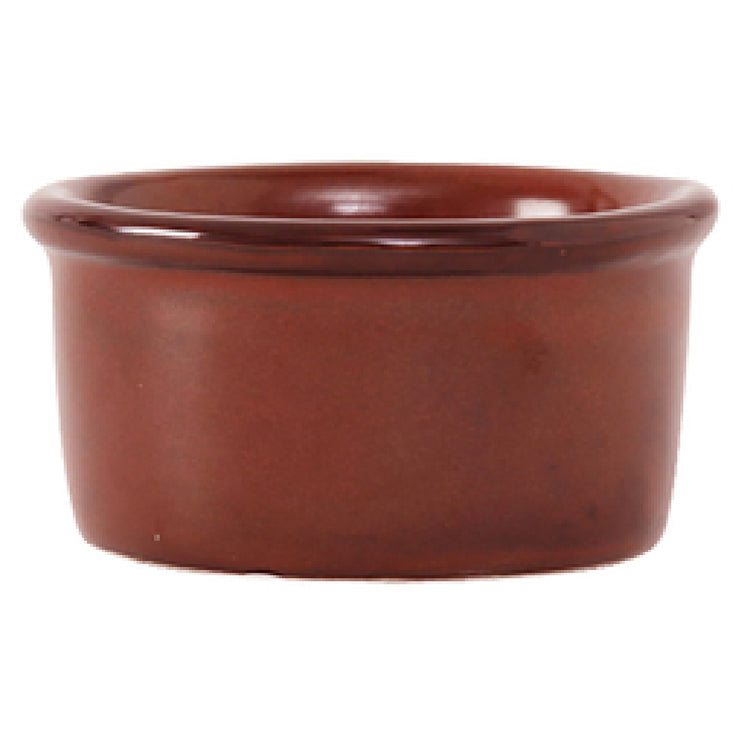 The Tuxton GAR-752 Ramekin 2-1/2 Oz. 3" Dia. X 1-1/2"H is a meticulously crafted piece of kitchenware, perfect for both professional and home kitchens that demand durability and versatility. With a capacity of 2-1/2 ounces, this round ramekin measures 3 inches in diameter and stands 1-1/2 inches tall, making it an ideal size for serving a range of dishes from soufflés to custards. The ramekin is fully vitrified, ensuring it is both microwave and dishwasher safe, and oven proof, thus offering exceptional durability and resistance to thermal shock. Made from lead-free ceramic, this ramekin meets safety standards while providing an elegant presentation. Part of the TuxTrendz® Artisan collection, it features a striking Red Rock color that adds a touch of sophistication to any table setting. Packed by 2 dozen per case, it caters to commercial needs, ensuring that restaurants, catering services, and hospitality venues can maintain consistency in their presentations. Its superior construction and aesthetic appeal make the Tuxton GAR-752 Ramekin a valuable addition to any culinary establishment, enhancing both functionality and visual appeal.