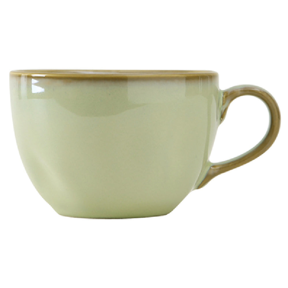 Tuxton GAS-083 Cup 10-1/2 Oz. 4" Dia. X 2-3/4"H is a meticulously crafted piece of ceramic ware that combines functionality with durability, making it an essential item for various segment markets such as hospitality, catering, and home dining. This round cup, equipped with a handle, is fully vitrified, ensuring it is microwave and dishwasher safe, thus catering to the needs of fast-paced environments where efficiency is key. The Tuxton GAS-083 Cup is also oven proof, adding an extra layer of versatility for culinary professionals or home chefs who require reliable kitchenware that withstands high temperatures. Constructed from lead-free ceramic, this cup underscores a commitment to safety and quality, essential for establishments that prioritize customer health. With a capacity of 10-1/2 oz., this cup is an ideal choice for serving beverages, from comforting teas to robust coffees. Its 4" diameter and 2-3/4" height provide a balanced proportion for both aesthetic appeal and practical use. Part of the TuxTrendz® Artisan collection, the Sagebrush color adds a touch of elegance and style, complementing a wide range of table settings. Packed by 2 dozen per case, this product is suitable for bulk purchases by businesses ready to enhance their service offerings with durable and stylish tableware.