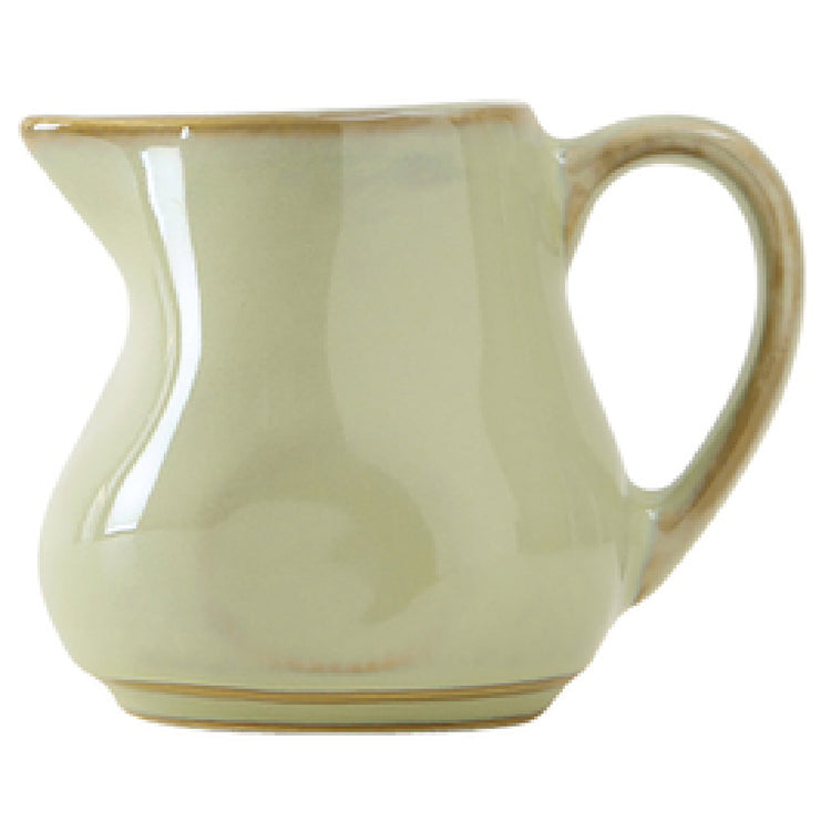 The Tuxton GAS-100 Creamer 4 Oz. 3-3/4" X 2-7/8"H is a versatile ceramic vessel designed to meet the needs of diverse market segments within the hospitality and food service industries. With a capacity of 4 ounces, it is ideal for serving individual portions of cream or milk. Its dimensions of 3-3/4 inches in length by 2-7/8 inches in height, coupled with an ergonomic handle, provide ease of use and a comfortable pouring experience. Crafted from fully vitrified ceramic, this creamer is lead-free, ensuring safety in food service applications. Its microwave and dishwasher-safe features enhance its practicality for busy kitchens, while its oven-proof capability adds a layer of versatility for creative culinary uses. The Tuxton GAS-100 is part of the prestigious TuxTrendz® Artisan collection and comes in a sophisticated Sagebrush color, adding a touch of elegance to any tabletop setting. Packed by the dozen, this creamer is an economical choice for cafes, restaurants, and hotels aiming to deliver quality and style in their beverage service. Its durable construction and classic design make it a timeless addition to any dining establishment, emphasizing both functionality and aesthetic appeal.