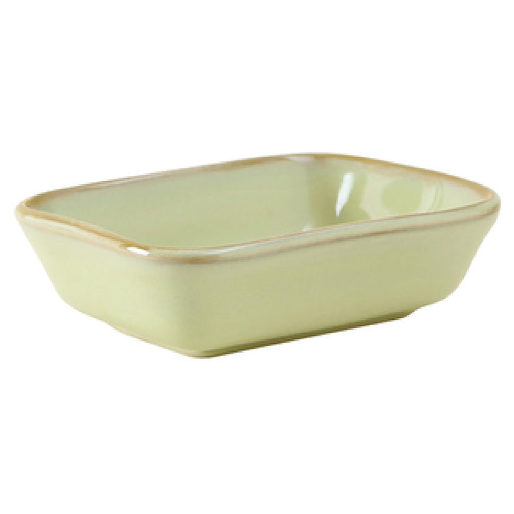 The Tuxton GAS-552 Side Dish 8 Oz. 5-3/8" x 4-1/8" x 1-1/2"H is a meticulously crafted rectangular dish, designed to meet the demanding standards of both home and professional kitchens. With an 8 oz. capacity, this side dish is perfect for serving appetizers, desserts, or small portions, making it ideal for various dining settings. The dimensions of 5-3/8" x 4-1/8" x 1-1/2"H provide a compact yet functional size that fits well in any kitchen space. This dish is microwave and dishwasher safe, ensuring ease of use and maintenance. Additionally, it is oven proof and fully vitrified, which enhances its durability and resistance to thermal shock. The lead-free ceramic construction emphasizes its commitment to safety and environmental consciousness. Part of the TuxTrendz® Artisan collection, the dish is finished in a sophisticated Sagebrush color, adding an elegant touch to your table setting. Packed by 2 dozen per case, it is an excellent choice for restaurants and catering services seeking reliable and stylish dinnerware solutions. The Tuxton GAS-552 Side Dish not only emphasizes functionality with its robust features but also offers a timeless aesthetic appeal suitable for diverse culinary environments.