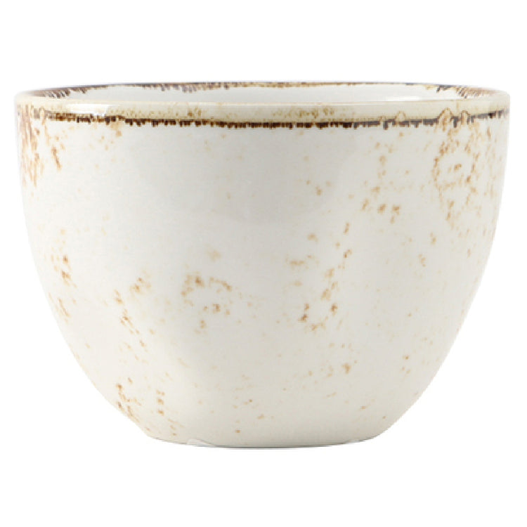The Tuxton GGA-040 Bouillon is a meticulously designed 12-1/2 oz. container, measuring 4-1/4" in diameter and 3" in height, catering to diverse segments within the culinary industry. Its round shape, crafted from lead-free porcelain, ensures safety and quality in every use. This bouillon bowl is microwave and dishwasher safe, enhancing its practicality for fast-paced kitchen environments. Additionally, it is oven proof and fully vitrified, a testament to its durability and suitability for both high-temperature and intense daily use. The Tuxton GGA-040 is part of the TuxTrendz® Artisan Geode collection in the Agave color, offering a unique aesthetic appeal that complements various dining settings. Sold in cases packed by 2 dozen, this product is ideal for large-scale operations, such as restaurants and catering services, seeking reliable and stylish dinnerware solutions. Its combination of robustness and elegance makes it a perfect fit for both casual and upscale dining experiences. The Tuxton GGA-040 Bouillon's design and features make it a valuable addition to any establishment aiming to provide high-quality dining experiences while maintaining efficiency and style.