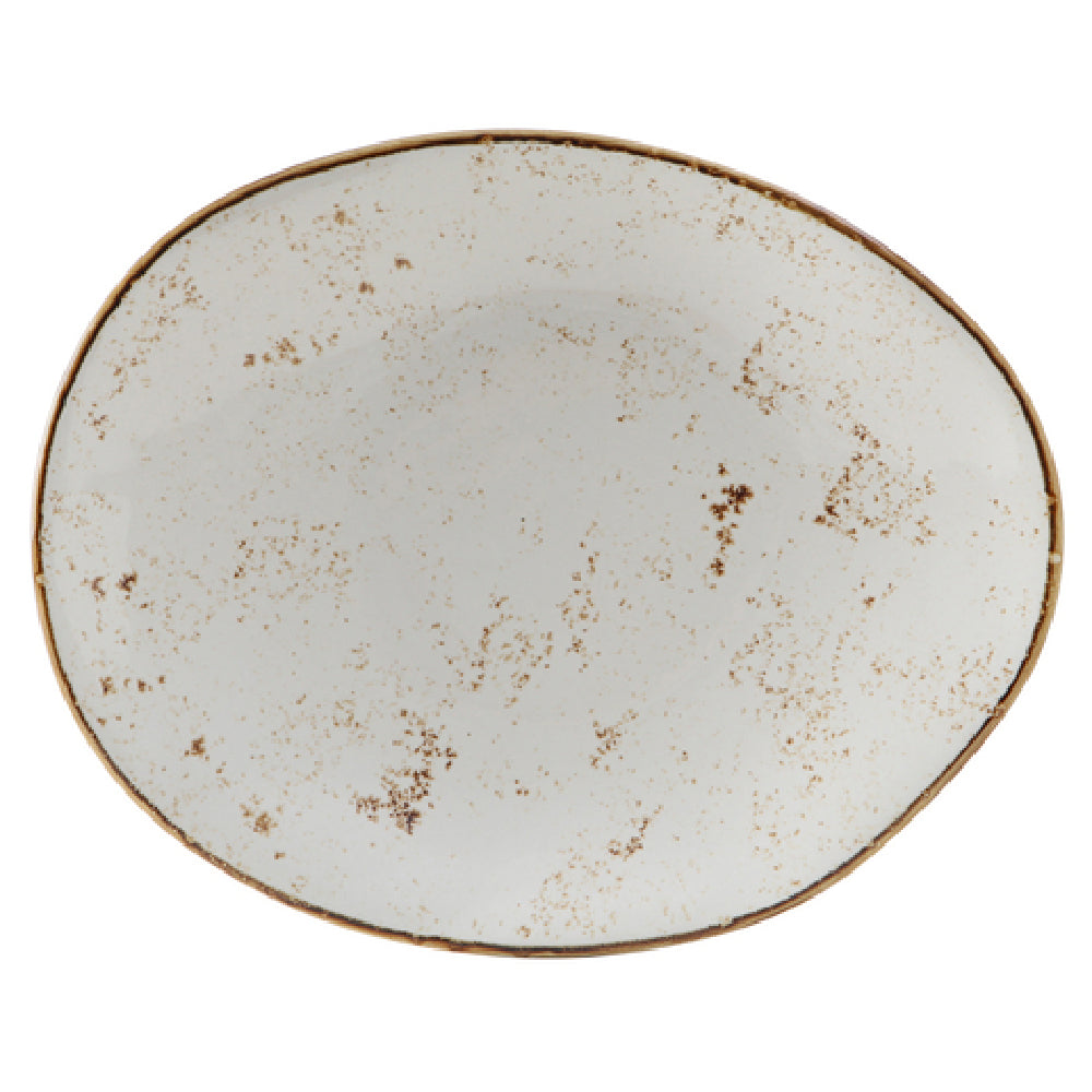 The Tuxton GGA-652 Plate 12" X 9-3/4" X 2"H Ellipse is a meticulously crafted piece from Tuxton China, designed to meet the diverse needs of the foodservice industry. This plate measures 12 inches by 9-3/4 inches with a height of 2 inches, offering ample surface area for food presentation while maintaining a sleek, elliptical shape. Constructed from fully vitrified, lead-free porcelain, it ensures durability and safety for everyday use in commercial settings. The plate is both microwave and dishwasher safe, providing convenience and efficiency for busy kitchens. Its oven-proof qualities make it versatile for various culinary applications, from prep to presentation. The Tuxton GGA-652 is part of the TuxTrendz® Artisan Geode collection in the Agave finish, which adds a touch of elegance and style to any table setting. Packed by the dozen, this plate is an ideal choice for restaurants, hotels, and catering services looking for reliable and stylish dinnerware solutions. Each aspect of this plate's design contributes to its suitability for the rigors of professional foodservice, ensuring it meets the high standards expected in the industry.