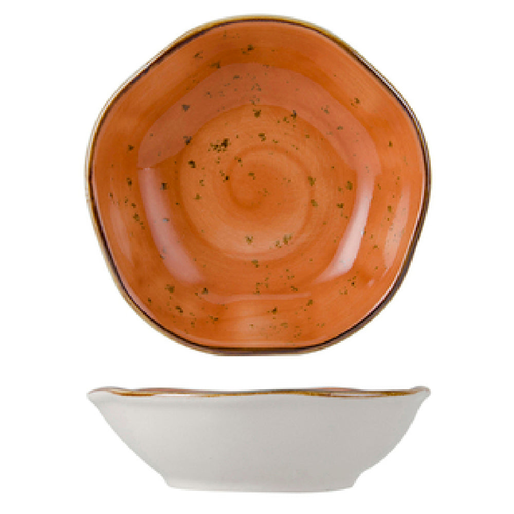The Tuxton GGC-060 Fruit Dish is an elegantly designed porcelain dish with a capacity of 5-1/2 oz., measuring 4-3/4 inches in width and 1-1/4 inches in height. This fruit dish features a free-form shape, adding a unique aesthetic appeal that suits various dining settings. Crafted from fully vitrified, lead-free porcelain, it ensures durability and safety for everyday use. Part of the TuxTrendz® Artisan Geode collection, this dish is presented in a captivating Coral color, making it an attractive addition to any tableware collection. The Tuxton GGC-060 is both microwave and dishwasher safe, providing convenience and ease of maintenance in busy environments. Additionally, it is oven-proof, offering flexibility for chefs and culinary enthusiasts who require versatile serving options. Packaged by 2 dozen per case, this fruit dish is suitable for both commercial establishments and residential use, catering to different market segments with its mix of aesthetic appeal, practicality, and high-quality construction.