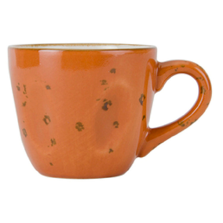 The Tuxton GGC-085 Espresso Cup 3-1/2 Oz. 2-5/8" Dia. X 2-1/4"H is meticulously crafted to meet the diverse needs of both home baristas and commercial coffee establishments. This espresso cup holds a capacity of 3-1/2 ounces, making it perfect for serving the ideal espresso shot. With dimensions of 2-5/8 inches in diameter and 2-1/4 inches in height, it offers a compact yet elegant design that fits comfortably in the hand, thanks to its ergonomic handle. The cup is microwave and dishwasher safe, providing convenience for quick reheating and effortless cleaning. Its oven-proof construction further enhances its versatility, accommodating a variety of serving conditions. Fully vitrified, this porcelain cup is lead-free, ensuring safety and durability for prolonged use. The TuxTrendz® Artisan Geode Coral design adds a touch of sophistication and style, appealing to both modern and traditional aesthetics. Packaged in cases of two dozen, it is an excellent choice for businesses needing bulk quantities. Whether for professional or personal use, the Tuxton GGC-085 Espresso Cup combines practicality with visual appeal, making it a preferred choice in the food service industry.