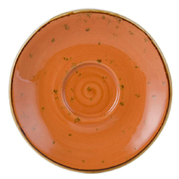 The Tuxton GGC-086 Espresso Saucer - 5" Dia. Round - is a meticulously crafted piece of dinnerware designed to meet the diverse needs of both commercial and residential settings. This saucer, with a diameter of 5 inches, is an excellent choice for serving espresso, providing a sophisticated and functional solution for cafes, restaurants, and home use. Constructed from fully vitrified porcelain, it ensures durability and resistance to chipping, making it a reliable option for high-traffic environments. Its lead-free composition highlights a commitment to safety and health standards, while its ability to withstand oven temperatures offers versatility in food presentation and service. Furthermore, the Tuxton GGC-086 is both microwave and dishwasher safe, adding convenience to its list of attributes, making it suitable for busy establishments where efficiency is key. As part of the TuxTrendz® Artisan Geode collection in Coral, this saucer brings a touch of elegance and contemporary style to any table setting. Packed by 2 dozen per case, it ensures ample supply for larger operations, catering to the needs of different segment markets within the hospitality industry, from boutique cafes to large-scale dining venues. This saucer embodies a blend of aesthetic appeal and practical functionality.