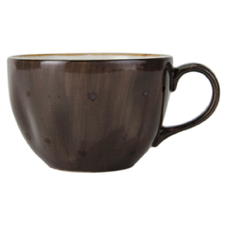 The Tuxton GGM-083 Cup 10-1/2 Oz. 5-1/8" X 4" X 2-3/4"H is a meticulously designed piece of porcelain ware, perfect for various segments within the food and beverage industry. With a capacity of 10-1/2 ounces, it is ideal for serving a range of beverages, from rich espressos to herbal teas, catering to both individual consumption and commercial hospitality needs. The cup's dimensions, 5-1/8 inches by 4 inches by 2-3/4 inches high, make it a versatile choice for any tabletop setting, balancing aesthetic appeal with practical design. Crafted from fully vitrified porcelain, this cup ensures durability and an elegant finish, safe for use in microwaves, dishwashers, and even ovens—a testament to its robustness in high-turnover environments. Made lead-free, it aligns with health and safety standards, making it a conscientious choice for establishments valuing customer well-being. The TuxTrendz® Artisan Geode Mushroom design adds an artistic flair, embodying a modern yet timeless aesthetic. Packed by two dozen per case, it is suited for bulk purchase by cafes, restaurants, and hotels. The combination of functionality, safety, and style positions the Tuxton GGM-083 Cup as a valuable asset across various market segments in the hospitality industry.