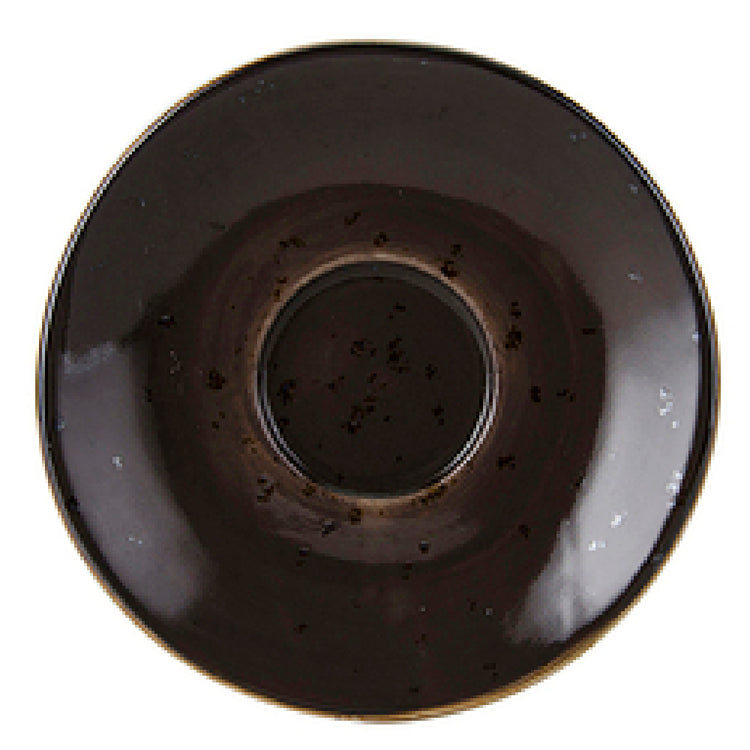The Tuxton GGM-086 Espresso Saucer 5" Dia. Round is a meticulously crafted porcelain saucer designed to complement any espresso cup with its elegant round shape. With a diameter of 5 inches, this saucer is part of the TuxTrendz® Artisan Geode collection, showcasing the unique Mushroom color that adds a touch of sophistication to any dining experience. Its construction as fully vitrified porcelain ensures both durability and a sophisticated finish, while being lead-free guarantees a safe beverage service. The saucer is microwave and dishwasher safe, offering convenience for everyday use in both residential and commercial settings. Its oven-proof feature further enhances its versatility, allowing it to withstand high temperatures without compromising its integrity. Sold in cases packed by 2 dozen, the Tuxton GGM-086 Espresso Saucer is an ideal choice for coffee shops, restaurants, and hotels seeking to elevate their tableware with premium quality and aesthetic appeal. This saucer combines functionality with a stylish design, making it a valuable addition to any establishment looking to enhance their beverage presentation. The Tuxton saucer stands out in the porcelain market for its blend of practicality and elegance, ensuring a reliable and visually appealing option for diverse market segments.